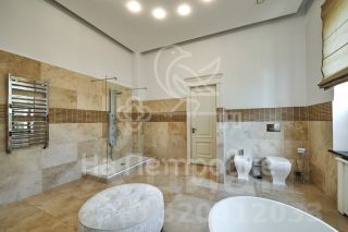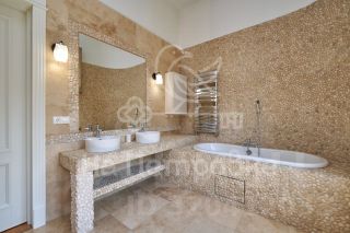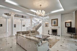 Лот 544110. Без комиссии для покупателя!ДОМ В ПОСЕЛКЕ НОВАХОВОНоворижское шоссе - 9 км от МКАДПлощадь 950 м2Участок 18 сот.5 cпален7 санузловОПИСАНИЕ:Предлагается просторный коттедж в классическом стиле со вторым светом и бассейном на участке 20 сотокПОЭТАЖНОЕ ОПИСАНИЕ:Цоколь: техпомещения, с/у1-ый уровень: прихожая, холл, гостиная со вторым светом, кухня - столовая с выходом на теплую закрытую террасу с камином, кабинет, бассейн (7м), бочка, сауна, душевая, с/у, гараж на 2 м/м, тех.помещение, с/у.2-ой уровень: гостиная с камином, бар, комната, спальня с с/у и балконом, спальня с с/у и террасой, мастер-спальня с с/у, гардеробной и зимним садом, спальня с с/у и гардеробной.Оперативный показ. Звоните!Номер объекта: #1/544110/10278