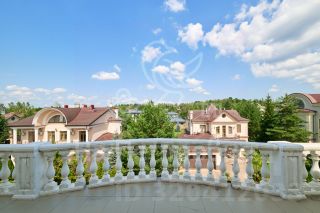 ID 772Трёхэтажный коттедж с бассейном в КП НоваховоПлощадь дома с 4-мя спальнями: 654 кв.м. Видовой участок с ландшафтным дизайном: 19 соток На первом этаже: парадный холл с лифтом, гостиная, каминный зал, кухня-столовая, санузел, гараж в контуре дома для 2-х автомобилей.На втором этаже: 4 спальни с ванными комнатами и 3 санузлами, библиотека.На третьем этаже: кабинет, бильярдная с санузлом.На больших открытых балконах с колоннами будет приятно отдыхать в тёплое время года и любоваться красивыми видами. Панорамное остекление и высокие потолки делают помещения невероятно просторными и уютными. Роскошный интерьер дополнен изысканной мебелью и люстрами. На участке построен двухуровневый хозблок, площадью 105 кв.м., для персонала.Есть большой открытый бассейн с зоной для отдыха. А на летней веранде под крышей будет удобно накрывать на стол. На участке аккуратно уложен газон, высажено много деревьев и кустарников, что создаёт кулуарную атмосферу. Коттеджный посёлок расположен в 10 км. от МКАД. По скоростному Новорижскому шоссе до Москвы можно доехать за 15-20 минут. КП Новахово прекрасно подходит для постоянного проживания в Подмосковье в окружении живописных природных пейзажей. Вблизи посёлка находится лес и протекает река Липка. В посёлке есть собственная развитая инфраструктура: детские и спортивные площадки, детский городок, большой Торгово-развлекательный центр, где представлены магазины, рестораны, бар, фитнес - клуб, СПА-центр, отель, аптека, химчистка, отделения банков и многое другое. Буквально за 5-10 минут на машине можно доехать до частной школы Ковчег ХXI, конноспортивного комплекса Новый Век и теннисного корта. Жителям также доступна богатая инфраструктура Жуковки.