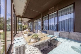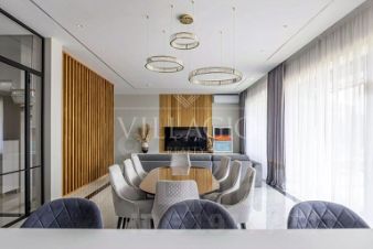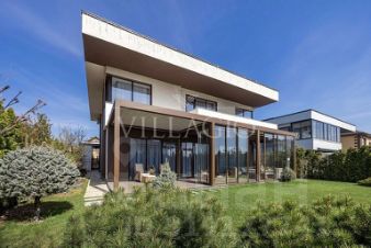 ID 3611Современный дом под ключ в КП ''Новорижский''Площадь дома с 4-мя спальнями: 287 м².Видовой участок: 12 сотокУдобная планировка идеально подходит для постоянного проживания на природе большой семьи.Первый этаж: гардеробная, просторная кухня-гостиная с камином, кладовка при кухне, тренажерный зал, который можно сделать гостевой спальней, санузел с душем, котельная, гараж для 1 автомобиля. Второй этаж: мастер-спальня с гардеробной и санузлом, спальня с гардеробной и санузлом, кабинет, который может служить дополнительной спальней, постирочная. Дом построен в современном стиле из высококачественных материалов и представлен ''под ключ''. Шикарный, лаконичный интерьер дополнен красивой мебелью и эксклюзивными предметами декора. Санузлы укомплектованы сантехникой известных производителей. На открытой террасе с мебелью будет приятно отдыхать в теплое время года.Панорамные окна, большая площадь остекления и высокие потолки визуально увеличивают внутреннее пространство, делая дом очень светлым и уютным. Центральные коммуникации позволяют жить на природе круглый год: газ, электричество, водоснабжение и канализация. На обширном участке выполнен ландшафтный дизайн: аккуратно уложен газон и сделаны дорожки. Уличное освещение создает романтическую обстановку в вечернее время. Свободного места достаточно для строительства беседки с зоной барбекю или детской площадки. Будем рады помочь воплотить любые задумки. Коттеджный посёлок ''Новорижский'' расположен в 20 минутах езды на машине от Столицы по скоростному Новорижскому шоссе. Прекрасная экология, живописные пейзажи и развитая инфраструктура - лишь часть преимуществ КП. Организованы места для рыбной ловли, мангалы и беседки. В посёлке проживает респектабельная публика и процветает добрососедство. Ухоженная территория КП занимает 25 Га и круглосуточно охраняется. Сервисная служба поддерживает чистоту и порядок. Для жителей организована продуманная инфраструктура: есть детские и спортивные площадки, парковки зоны, водоемы и места для отдыха рядом с лесом. В нескольких минутах езды находятся Ломоносовская школа и Павловская гимназия с высоким уровнем образования. Рядом сосредоточены детские сады, школы, продуктовые магазины, кафе, рестораны, ТРК ''Павлово Подворье'', спортивный комплекс ''Княжье озеро'', салоны красоты, СПА, гольф-клуб и конноспортивный комплекс.