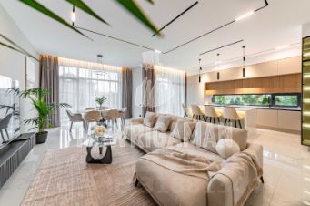 ЛОТ 80195 НР Продажа загородного дома площадью 400кв.м. Новорижское шоссе, 23 км от МКАД. Коттеджный посёлок Новорижский. Современный дом построен под ключ и прекрасно подходит для жизни большой семьи в экологически чистом районе Подмосковья. Лаконичный интерьер исполнен в светлых тонах и дополнен стильной мебелью. Участок 12 соток.Планировка:1 этаж: прихожая с с/у, просторная кухня-столовая, гостиная с камином вцентре, спальня с с/у, кабинет. Утепленный гараж с электроприводными воротами. А также есть навес для авто.2 этаж: мастер-спальня с отдельной просторной гардеробной комнатой исвоим с/у, детская спальня со своим санузлом и гардеробной, спальня сгардеробной.Мансардный этаж: кабинет-комната отдыха, подсобные помещения. Гостевой дом: спальня, кухня, обеденная зона, с/у исауна. Здесь же предусмотрена котельная с премиальным оборудованием дляотопления и горячего водоснабжения. Коттеджный поселок Новорижский - это элитный поселок в 23 км по Новорижскому шоссе. Поселок расположился в окружении смешанного леса, образующего естественную рекреационную зону. Тротуары и прогулочные зоны выложены брусчаткой.Внутренняя инфраструктура: детский сад, спортивная площадка, три зоны отдыха с искусственным водоемом, магазин, гостевая парковка, ремонтно-эксплуатационная служба, круглосуточная охрана, видеонаблюдение, КПП на въезде. Внешняя инфраструктура: Аутлет Новая Рига, ТЦ Княжий Двор, школа Вандер Парк, школа Экономики и права.Рядом поселки: Агаларов Эстейт, Княжье Озеро, Кембридж, Покровский Монтевиль, Риверсайд. Продажа напрямую от собственника.