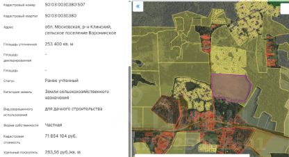 Продается участок 15 гектаров для дачного строительства. СХ-2. Есть утвержденный ППТ (проект планировки). По границе участка асфальтированная дорога, электричество. Участок с молодыми деревьями.Сейчас участок 25 гектаров 50:03:0030380:507. Поделим на участки по 10 соток. Себе оставим 10 гектаров, продаем 15. По 15 000 рублей за сотку. Розница будет от 40 т.р. за сотку. Обсуждаем варианты и другой площади.Участков СХ-2 в Подмосковье больше не будет. с 25 года введен запрет на перевод в СХ-2. Поэтому участки, которые остались, очень ценны.