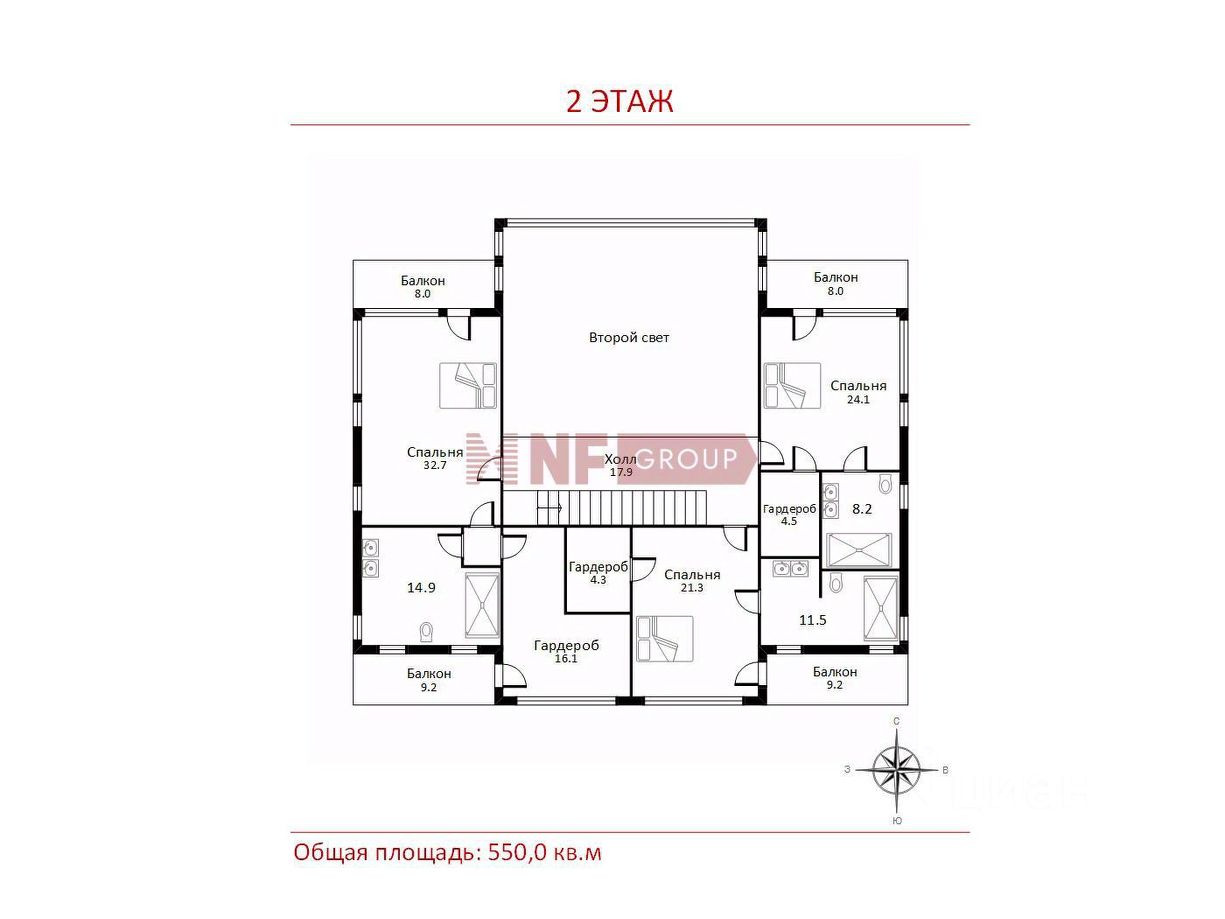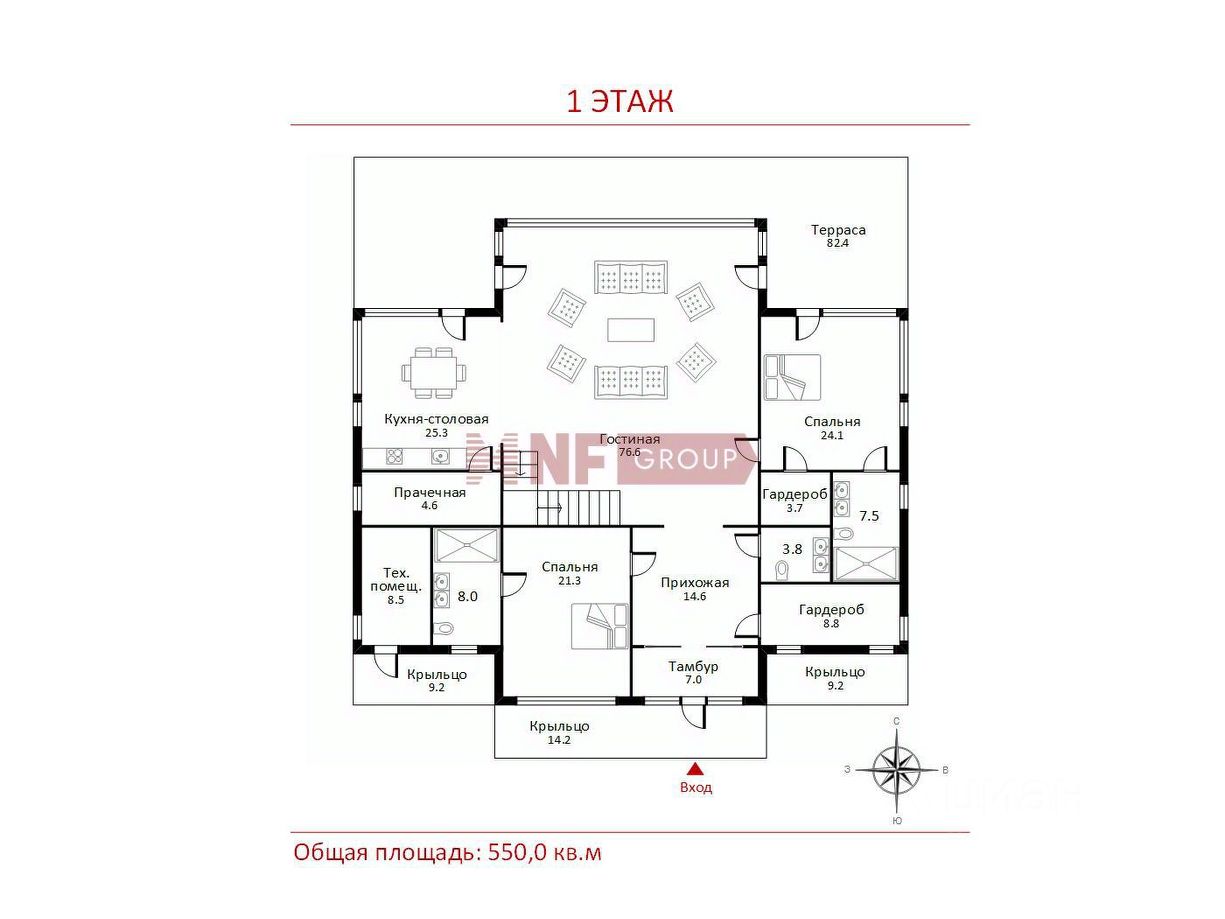 Общая площадь550 м2