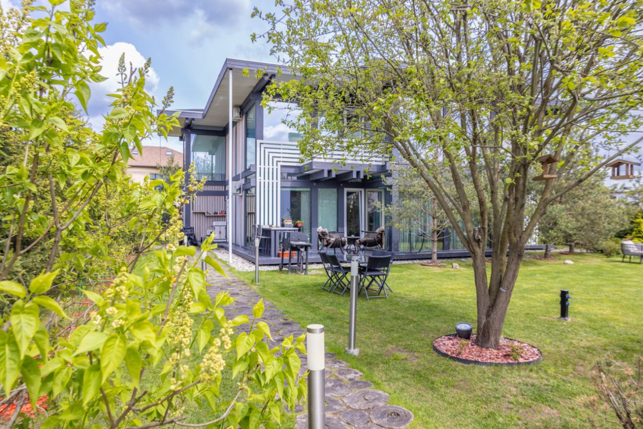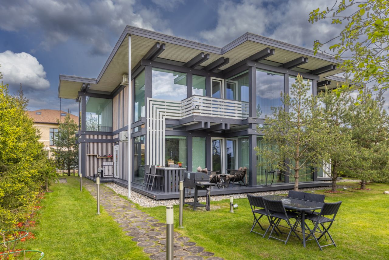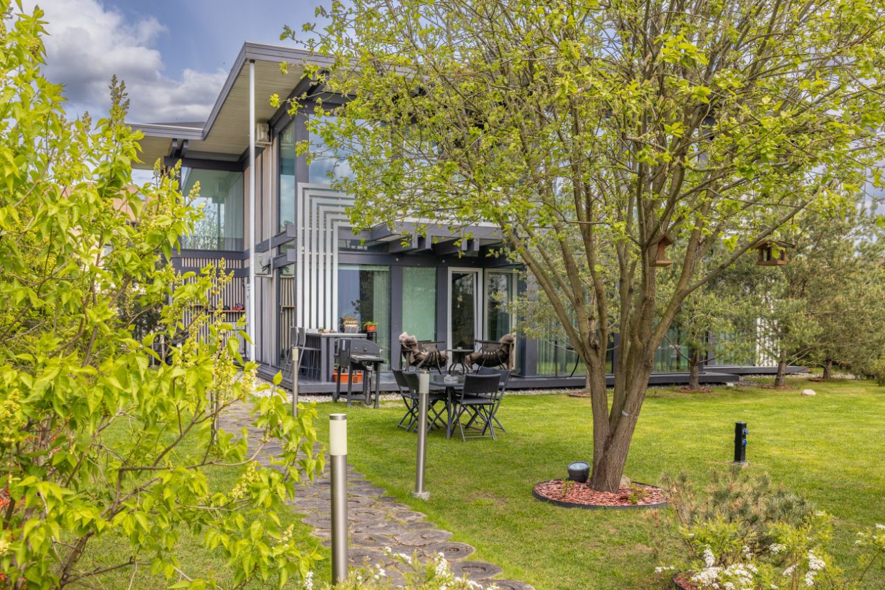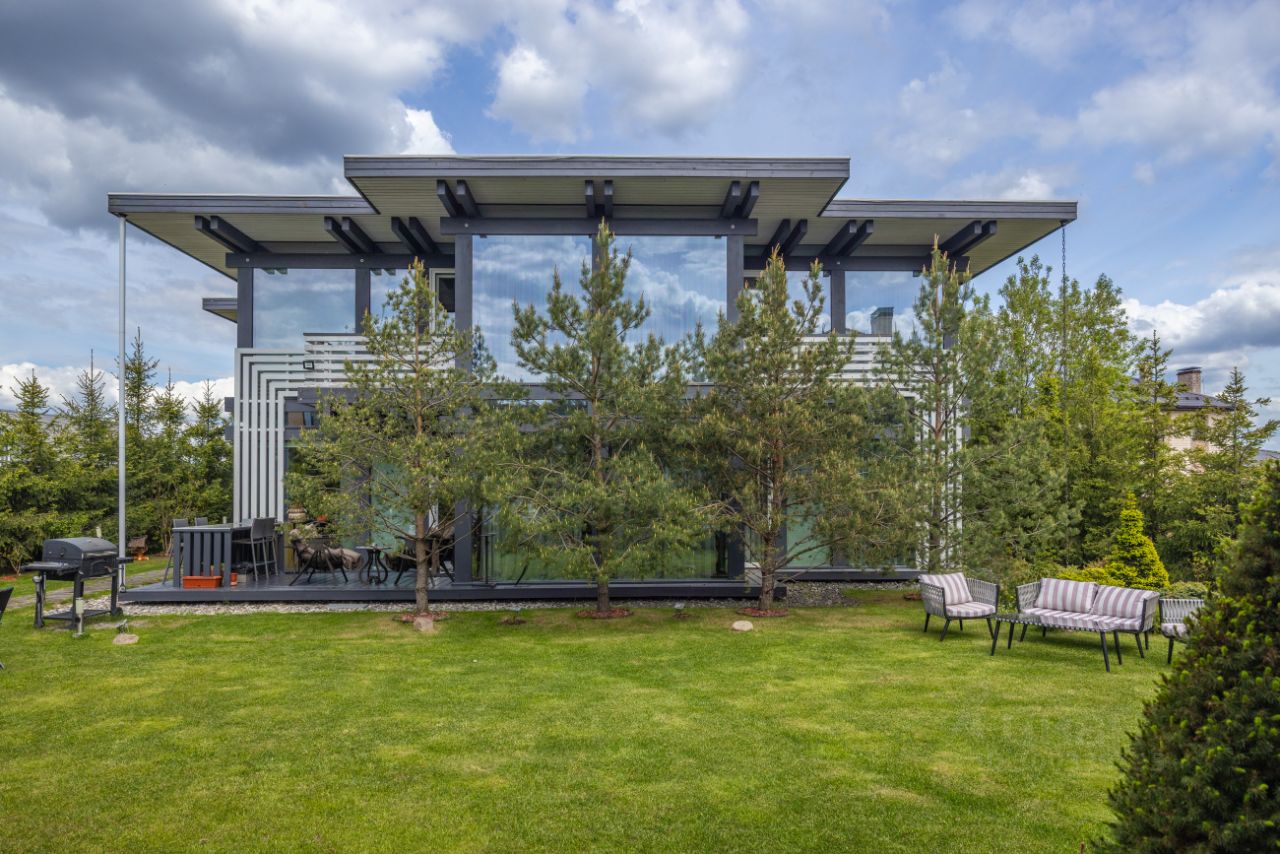 ОПИСАНИЕ: Предлагается стильный качественный дом в поселке Новорижский. Дом построен по технологии фахтверк с использованием эко-материалов. Благодаря панорамному остеклению в доме много света, а зона гостиной очень просторная. На участке также расположен СПА-комплекс с бассейном 5м в длину, сауной, душевой и с/у. Также имеется блок персонала с кухней, спальней и с/у. На участке выполнен красивый ландшафтный дизайн и высажены крупные ели по периметиру, что создает атмосферу приватности.