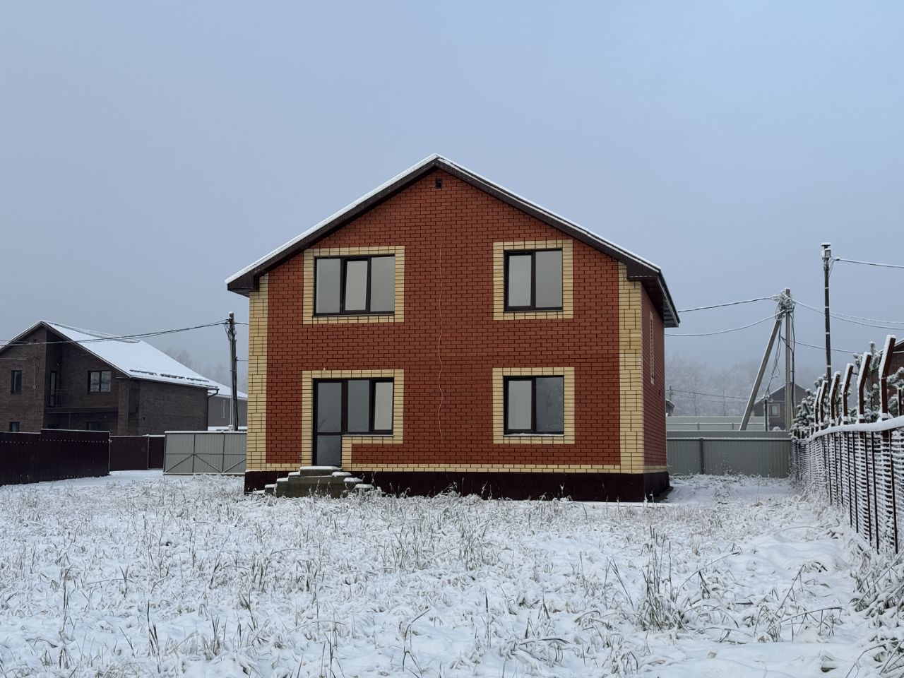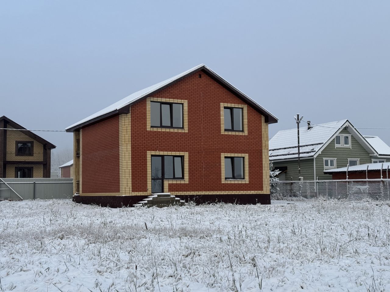 Технические характеристики дома: Фундамент дома - свайно-ростверковый с утепленной монолитной плитой. Утепление крыши в 4 слоя, кровля - металлочерепица. Дом построен из газосиликатного блока ''BONOLIT'' D500, стены утеплены каменной ватой Технониколь, толщиной 50 мм и облицованы кирпичом.
