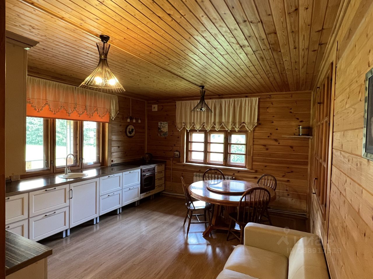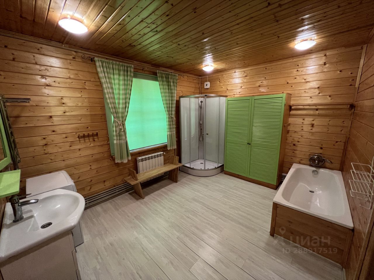Продается современный полностью деревянный дом 190 кв м на участке правильной формы 19 соток в уникальном месте Подмосковья на Истринском водохранилище (400 м до воды!) в ТСЗУ Рождествено. Двухэтажный дом 2014 года постройки в стиле шале построен из сосновых бревен и бруса и для красоты обшит имитацией бруса внутри и снаружи. Полностью готов для круглогодичного проживания. Дом поставлен на учет, имеет адрес, подходит для прописки. На 1-ом этаже дома: прихожая, гардеробная, кухня-столовая, гостиная с огромным настоящим камином, санузел 12,5 м с ванной, душевой кабиной, биде, гостевой или детский санузел с небольшой финской сауной. На втором этаже 4 спальни и несколько кладовых. Также в доме есть большая летняя терраса площадью 20 м. Помимо гардеробной и прихожей, практически во всех комнатах есть больше встроенные шкафы. Интерьер дома выполнен в едином стиле, продается со всей мебелью и техникой в идеальном состоянии. Дом не требует дополнительных вложений и полностью готов к проживанию. Данный поселок ТСЗУ Рождествено находится на полуострове, окруженном Истринским водохранилищем, на конечном участке дороги - поэтому в поселке всегда почти АБСОЛЮТНАЯ тишина! Поселок огорожен, есть круглосуточная охрана, шлагбаум, камеры, уличное освещение, чистка дорог, вывоз мусора: суммарный годовой взнос за все это составляет всего 28 тысяч рублей. Ровный участок прямоугольной формы, по периметру растут высокие канадские сосны с длинной пушистой хвоей, высотой свыше 5 м, которым более 15 лет. Также на участке растут две группы туй до 7 метров, идеальной формы и густоты. Весь участок засажен идеальным многолетним газоном. Также на участке растет красивая ель и шаровидная туя. Тихие и спокойные соседи с трех сторон. На участке есть большая забетонированная и замощенная парковка на 4-5 автомобилей. На участке также расположено второе 2-х этажное строение 120 кв м, которое можно использовать под гостевой дом, баню и хозяйственный блок. Дом подключен ко всем коммуникациям, электричество центральное 15 кВт. Собственный колодец. Септик типа Топас с автоматической откачкой очищенной воды в канаву за пределы участка. Отопление и нагрев горячей воды осуществляются котлом на дизеле, расположенным в отдельном здании котельной. Запаса топлива хватает на несколько месяцев при постоянном проживании зимой. Летом расход солярки практически нулевой, поскольку используется только для подогрева воды в бойлере косвенного нагрева 200 литров. В настоящее время можно подключить к дому магистральный ГАЗ всего за 30 тысяч рублей! Вокруг поселка находятся множество пляжей и баз отдыха, где можно взять катер или лодку в аренду и хранить свой. Рядом расположены пятизвездочные отели с ресторанами и СПА. Продуктовые магазины, в том числе Магнит и Перекресток. В соседней деревне только что открылась шикарная конная база. Один взрослый собственник. В собственности более 10 лет. Полная стоимость в договоре! Оперативный показ в любое удобное для вас время!