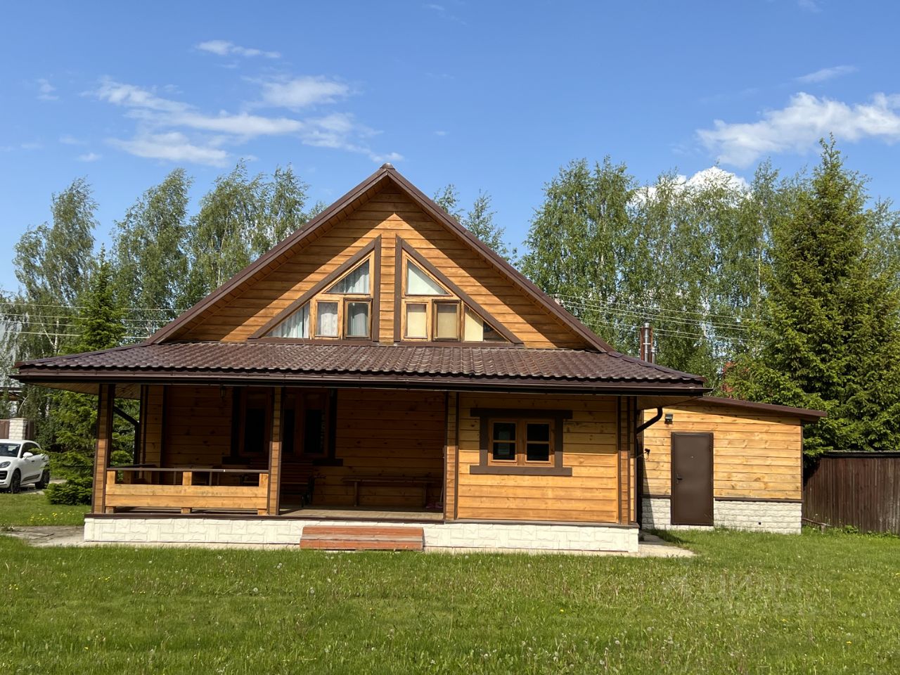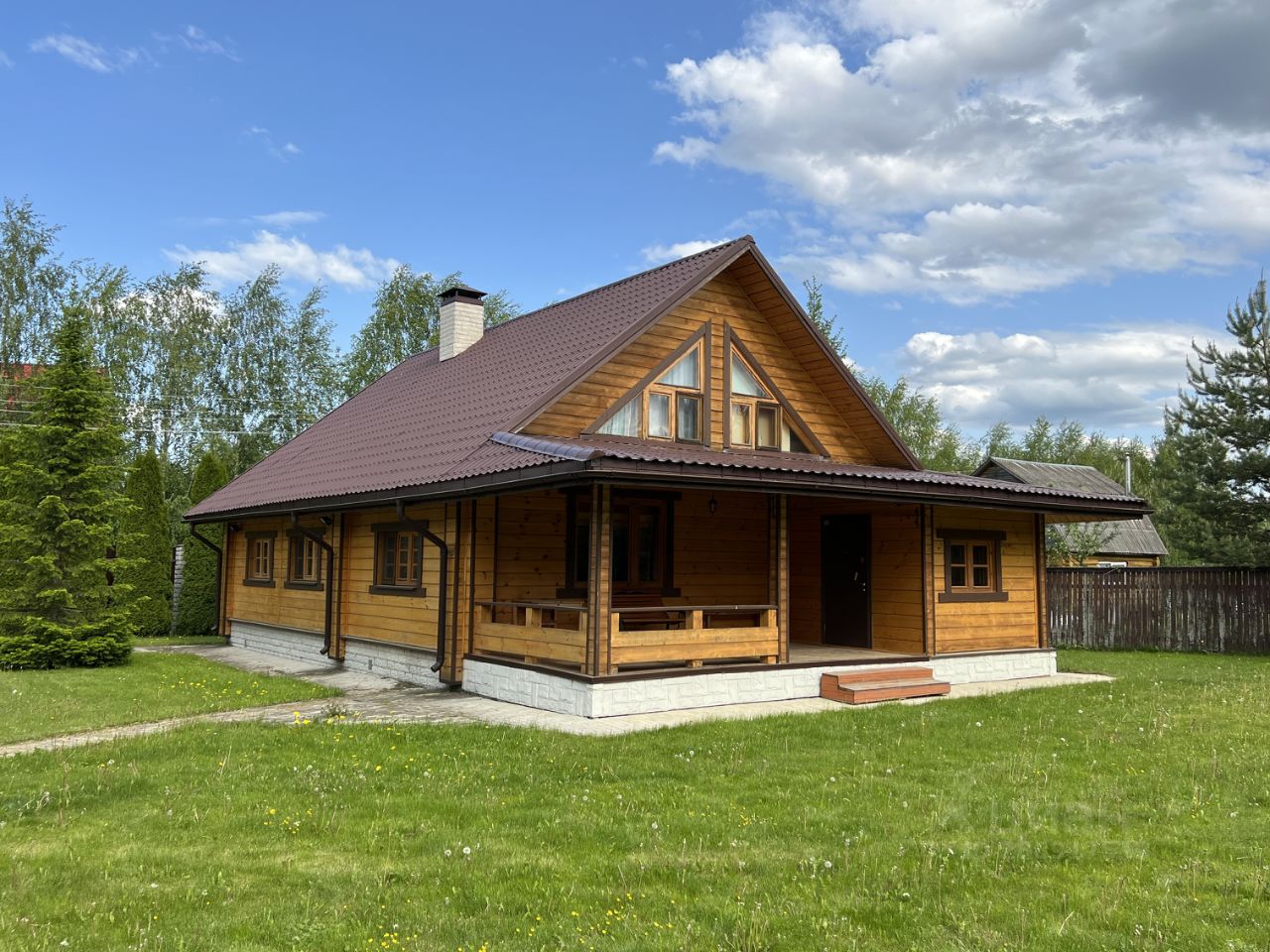 Продается современный полностью деревянный дом 190 кв м на участке правильной формы 19 соток в уникальном месте Подмосковья на Истринском водохранилище (400 м до воды!) в ТСЗУ Рождествено. Двухэтажный дом 2014 года постройки в стиле шале построен из сосновых бревен и бруса и для красоты обшит имитацией бруса внутри и снаружи. Полностью готов для круглогодичного проживания. Дом поставлен на учет, имеет адрес, подходит для прописки. На 1-ом этаже дома: прихожая, гардеробная, кухня-столовая, гостиная с огромным настоящим камином, санузел 12,5 м с ванной, душевой кабиной, биде, гостевой или детский санузел с небольшой финской сауной. На втором этаже 4 спальни и несколько кладовых. Также в доме есть большая летняя терраса площадью 20 м.