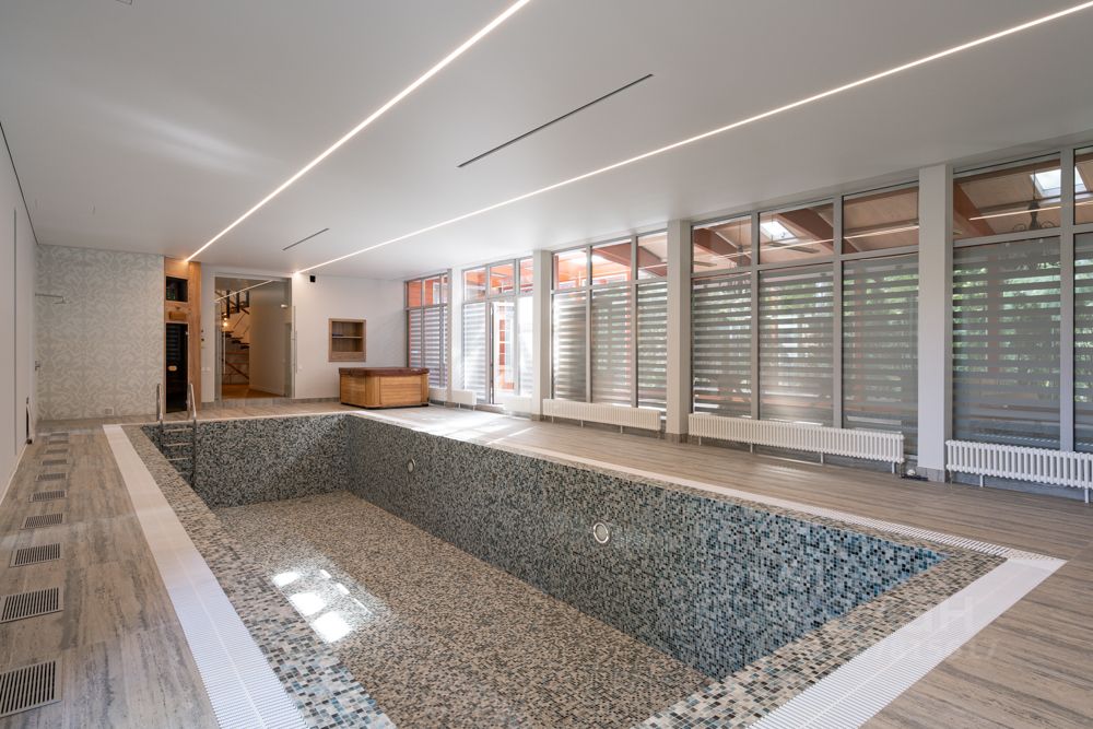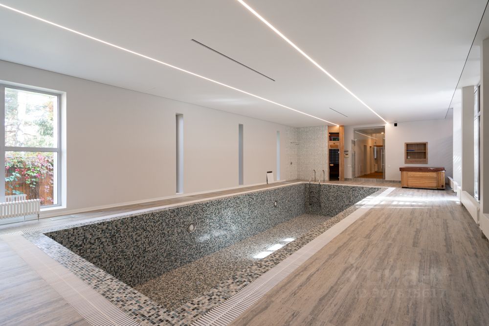 1 этаж: холл, гостиная со вторым светом и дровяным камином, кухня-столовая, спальня, гостевой с/у., бассейн 11 м на 3,5 м , глубина 1,5 м