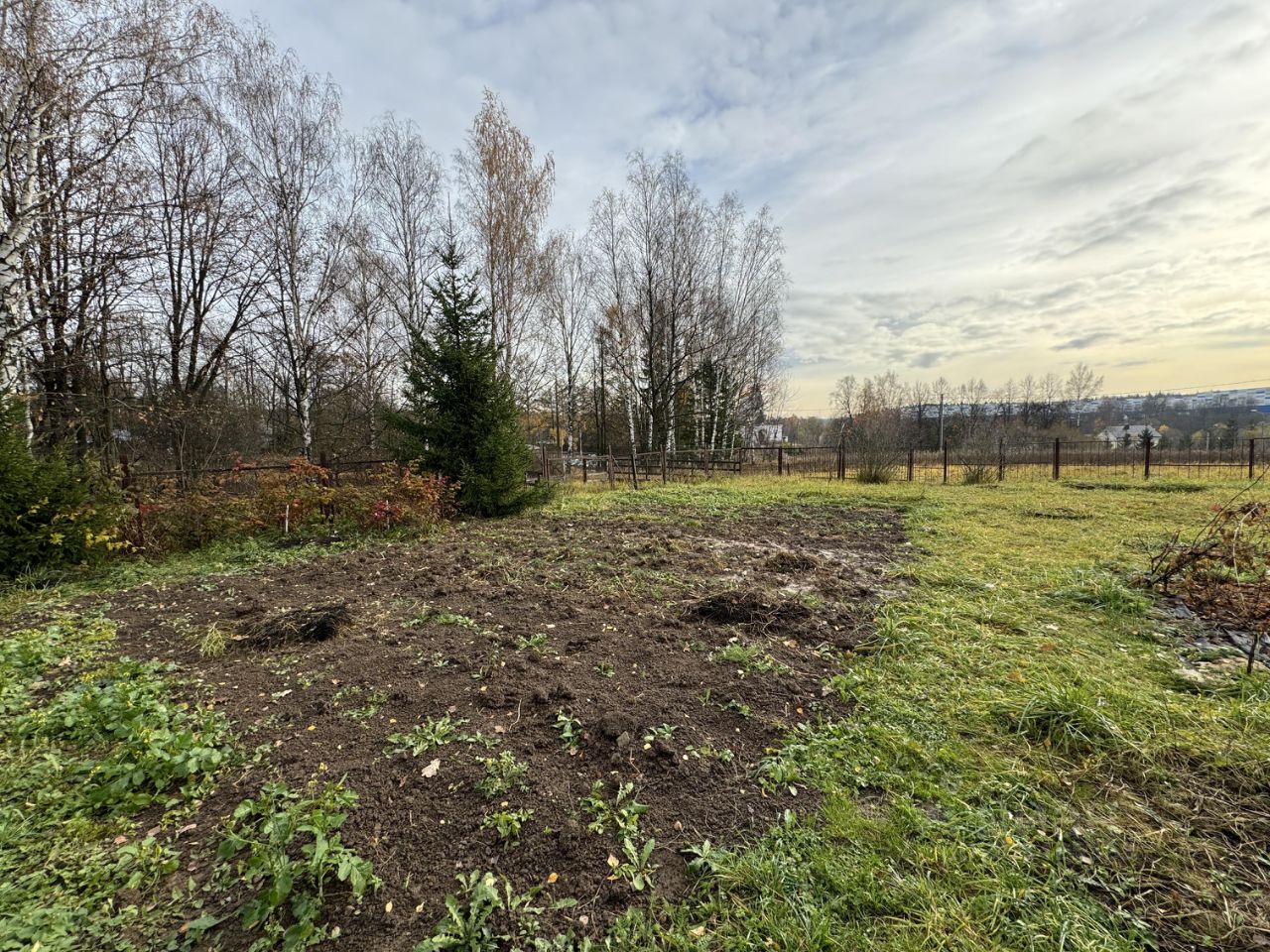 Ухоженный участок: растут красавицы ели, оборудованы грядки с клубникой, посажены кусты красной, белой смородины, малины, яблони, сливы, груши различных сортов, крыжовник, ежевика, установлена беседка, парник, качели, вольер.