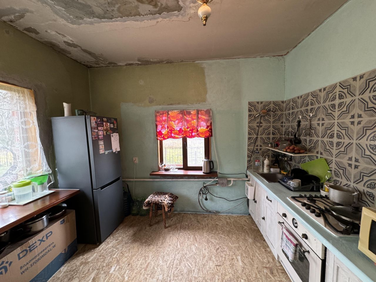 Площадь дома - 71,3 кв.м. Изолированные жилые комнаты - 18,8 и 12.3 кв.м Кухня - 19.1 кв.м. Прихожая - 7,1 кв.м. Коридор - 6,3 кв.м. Санузел совмещенный - 5,0 кв.м., есть еще туалет на улице Котельная - 2.7 кв.м. Высота помещений 260 см. Дополнительно есть мансардный этаж 52,5 кв.м (разделен на два помещения 29,9 и 22,6 кв.м. Дом построен из пеноблоков обложен кирпичом. Требует ремонта но можно заехать и жить, все необходимое в наличии, нo нужно приложить руки. Оборудован септик, вода из кoлодца, (глубина 23 метра), вода чистейшая с лечебной голубой глиной, зимой не замерзает, установлен насос, отопление через электpoкoтeл. Коммунальные затраты только на электричество в среднем зимой 4500 рублей. Газ проходит по границе земельного участка. Можно по гос программе подвести бесплатно до дома. Подъезд грунтовая дорога - 350 метров, зимой дороги чистят, соседи живут круглогодично. Тихое уютное место!