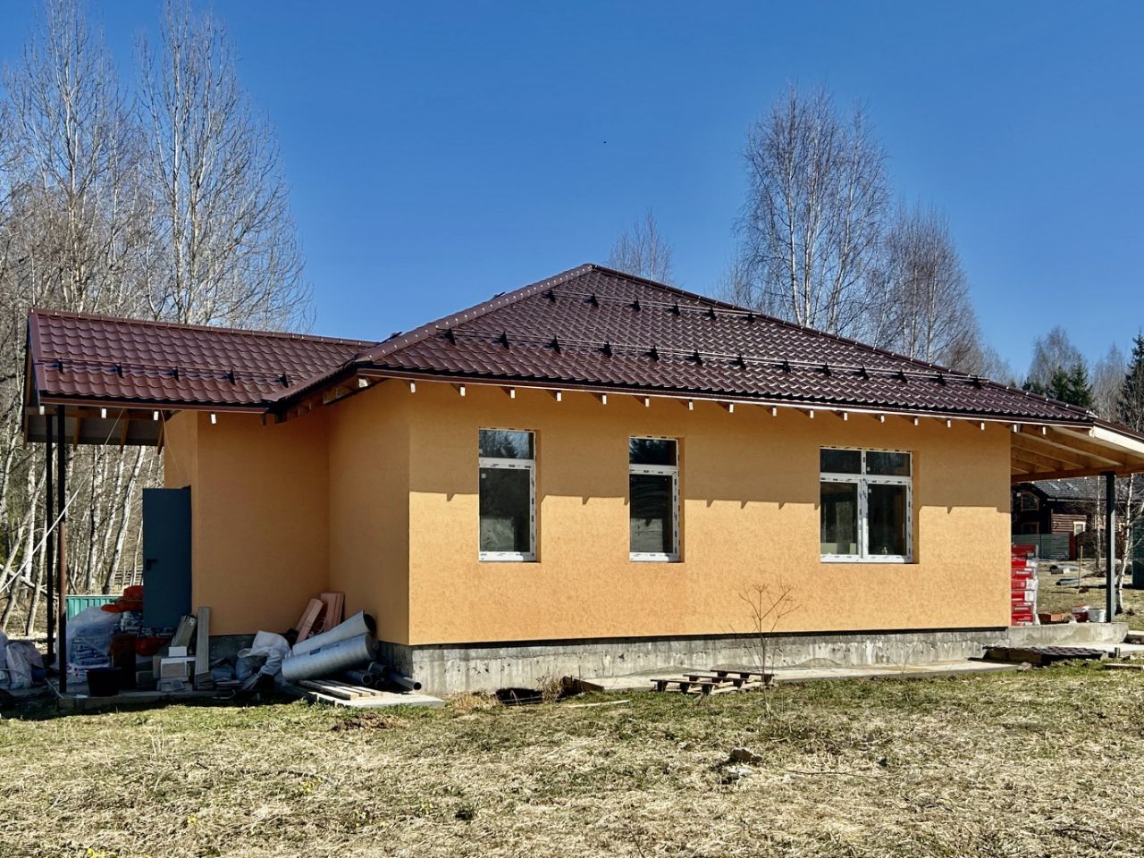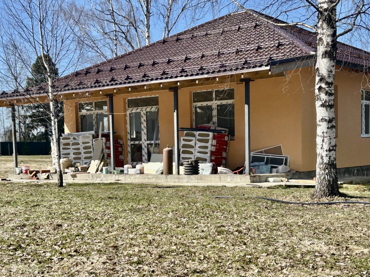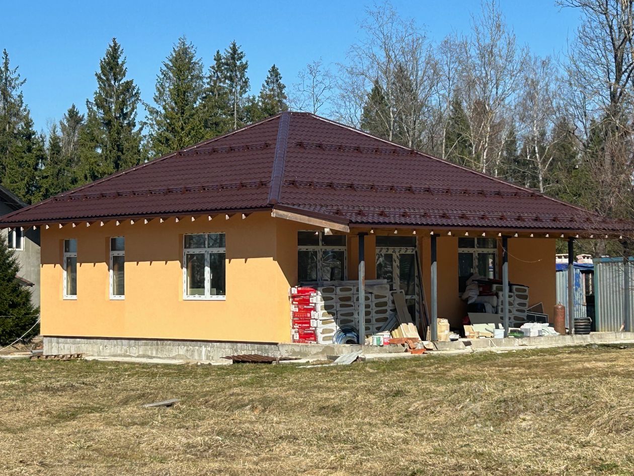 Продается новый дом площадью 132,4 м2 (год постройки - 2024), расположенный на ровном участке правильной формы площадью 10 сот. в камерном коттеджном поселке ''Рижское поместье''. Поселок располагается непосредственно в лесном хвойном бору. Дом одноэтажный, высота потолка 3,2 м. Планировка дома включает в себя гостиную с кухонной зоной и выходом на просторную террасу, три спальни, хозяйственную комнату, 2 санузла. В доме выполнены штукатурные работы, монтаж теплого пола и электричества, монтаж подвесного потолка с освещением, подведена централизованная вода. Застройщик может оказать дополнительные услуги по выполнению финишных внутренних отделочных работ в соответствии с пожеланиями покупателя. Возможно увеличить площадь участка.