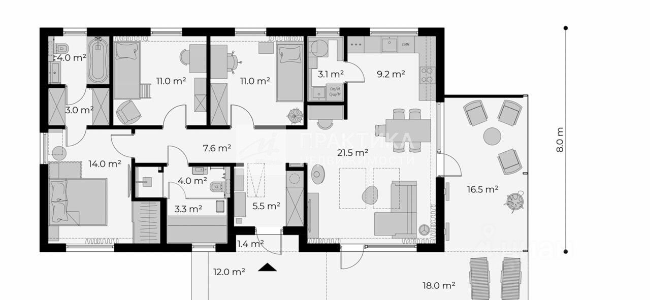 Функциональная планировка: Прихожая, просторная кухня-гостиная с кладовкой, санузел, мастер-спальня с гардеробом и с санузлом, 2 спальни. Высокие потолки. Без мебели. Продуманная планировка способствует созданию уютной атмосферы для каждого члена семьи.
