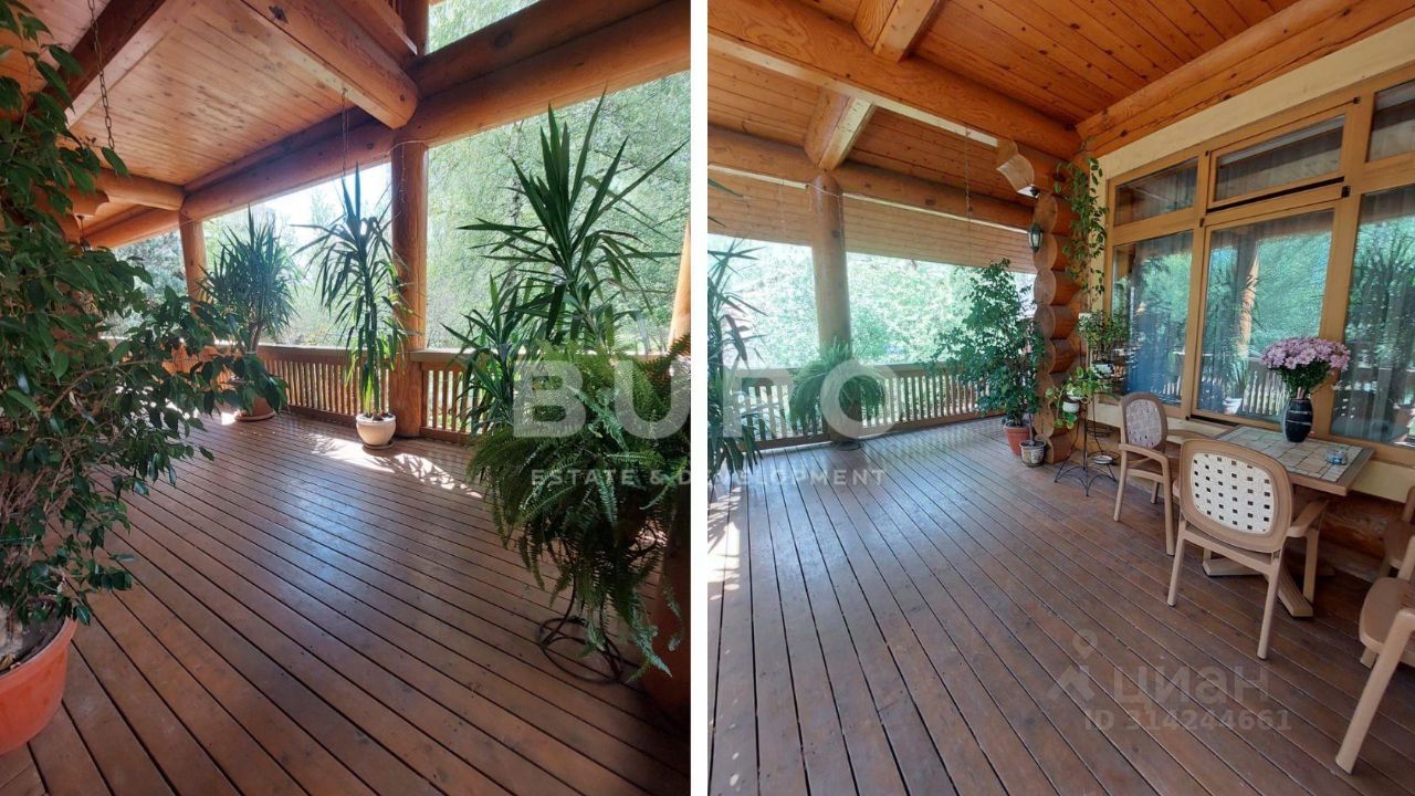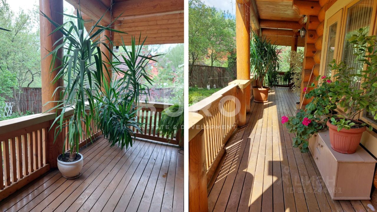 Двухэтажный бревенчатый дом с 4-мя спальнями, общей площадью 182 м², представлен ''под ключ'' и расположен на видовом участке 13.2 соток.