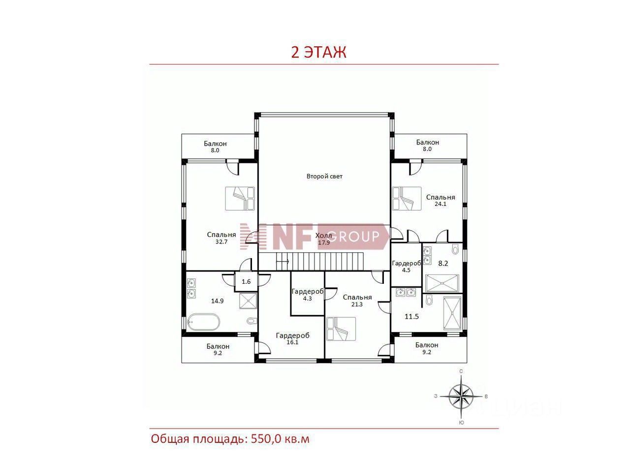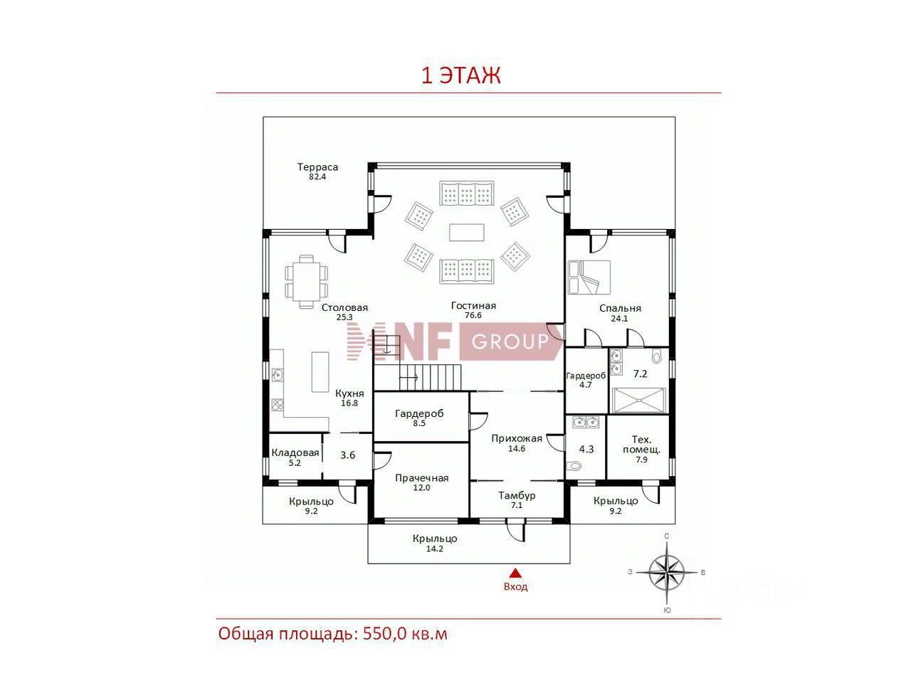 Общая площадь550 м2