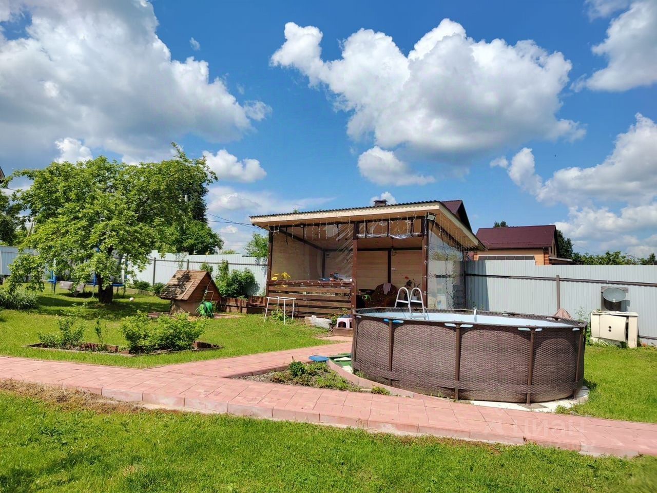 Просторный дом рядом с дер. Ямуга, городского округа Клин (3 км. от города в сторону Твери). От МКАД 75 км. Вокруг прекрасная экология. В 200 м. озеро и церковь. Есть магазин. Тихий и спокойный район, для проживания большой семьи. Описание: Дом 2018 года постройки. Стены бревно, с внешней стороны отделанный сайдингом. Крыша металлочерепица. Фундамент ленточный. Общая площадь 120 кв.м. Жилая площадь: 74 (1 эт. гостиная 20 м. Кухня 14 м. Спальня 12 м. 2 эт. 2 комн. 20 и 22 кв.м. с/у в доме. Окна пластиковые. Коммуникации: газ, свет 15 кВт, вода колодец 12 колец, канализация септик переливной 2 и 3 кольца. Дополнительные строения: беседка, бассейн, 2 теплицы, хозблок. Участок 12,4 сотки. Ровный, прямоугольной формы, обработанный. Забор из профлиста. Имеются плодовые деревья и кустарники. Более 5-ти лет в собственности. При бронировании объекта в текущем месяце оформление сделки за счет агентства!