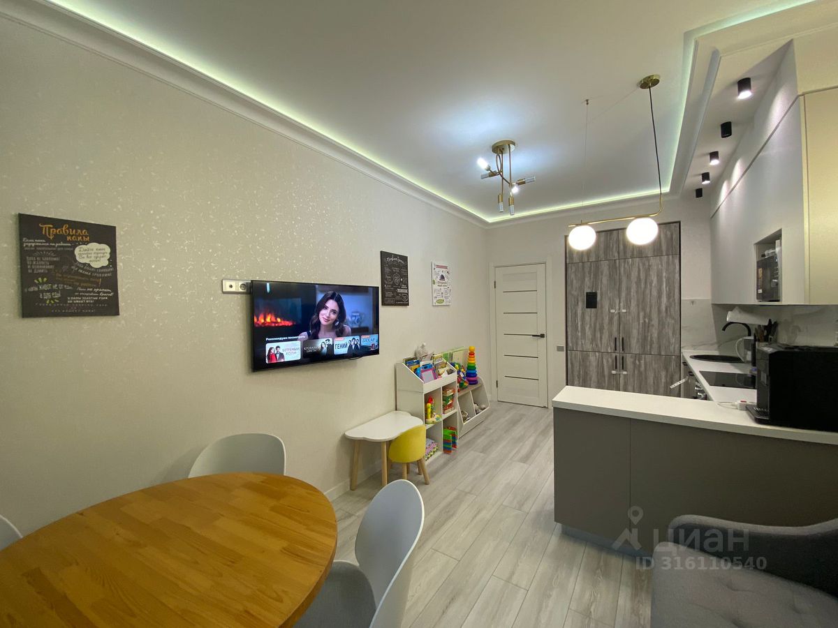 Уютная квартира с дизайнерским ремонтом с нетерпением ждёт новых хозяев! Квартира формата евро -3 с функциональной распашной планировкой (окна выходят на разные стороны дома): просторная кухня- гостиная, 2 изолированные спальни, гардеробная 4 кв.м. Высокие потолки -2,8 м. Кухонный гарнитур со встроенной бытовой техникой, мебель в спальне останется в подарок новым владельцам!
