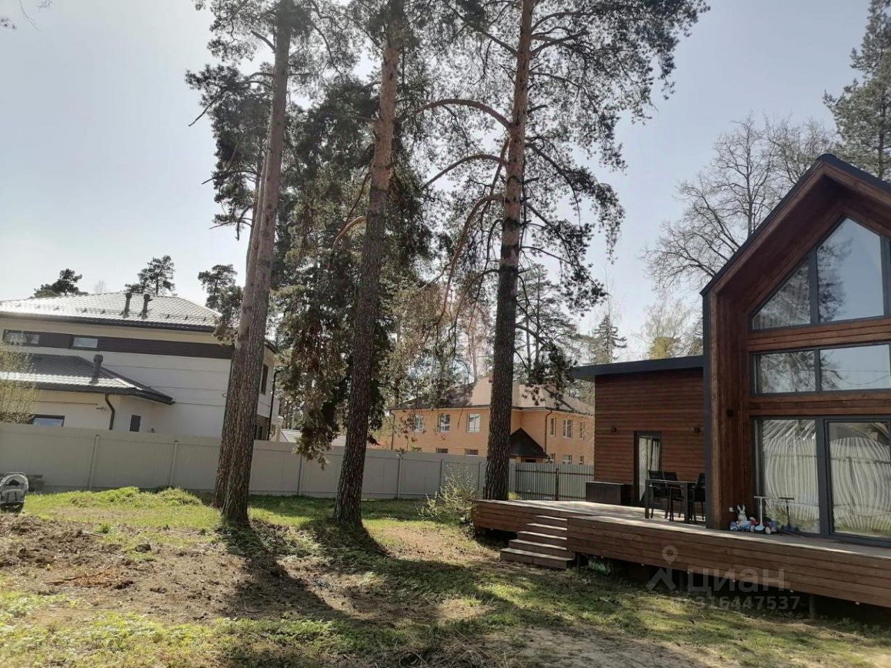 О участке: Участок огорожен, откатные ворота, вековые сосны, стоянка на два автомобиля.