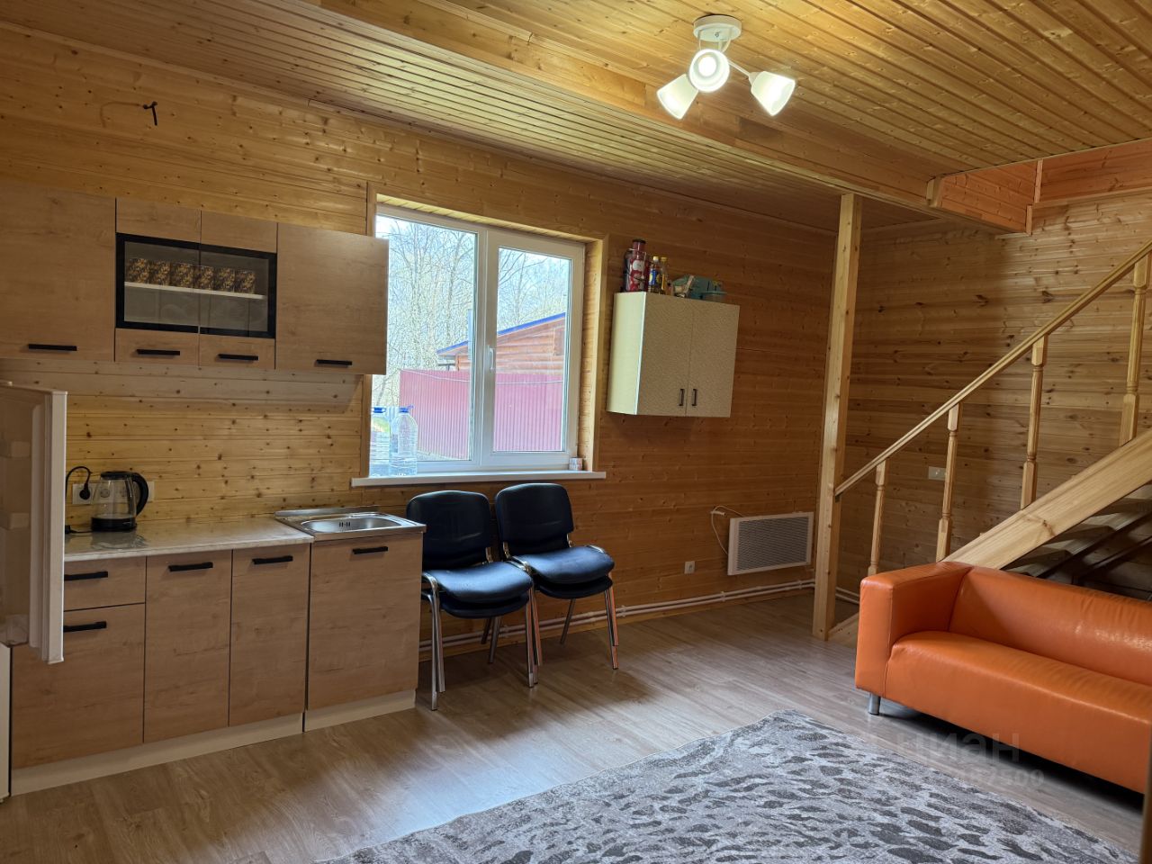 Дом в жилой деревне (100 участков). Подойдет для отдыха с семьёй, подальше от городской суеты. Рядом есть все необходимое: лес, большой пруд с хорошим пляжем. В 5-ти км: школа, сад, магазины. Описание:. Материал стен брус. Размер 6х6 м. 1 этажный с мансардным этажом. Общая площадь 65 кв.м. Жилая 35 кв.м. Кухня 19 кв.м. 1-й этаж: коридор квадратной формы 3,5 кв.м. Кухня - гостинная 19 кв.м. кв.м., с/у совмещенный 4 кв.м. с джакузи, сауна. 2-й этаж: Три изолированные комнаты. 12/10/13 кв.м. Крыша металл. Фундамент: бетонные столбы. Коммуникации: электричество 15 кВт, отопление электрическое, канализация-септик (2 емкости и следующий 3 кольца), газ по границе, 2 колодца (7 колец для питья заведено в дом, 6 колец для полива).