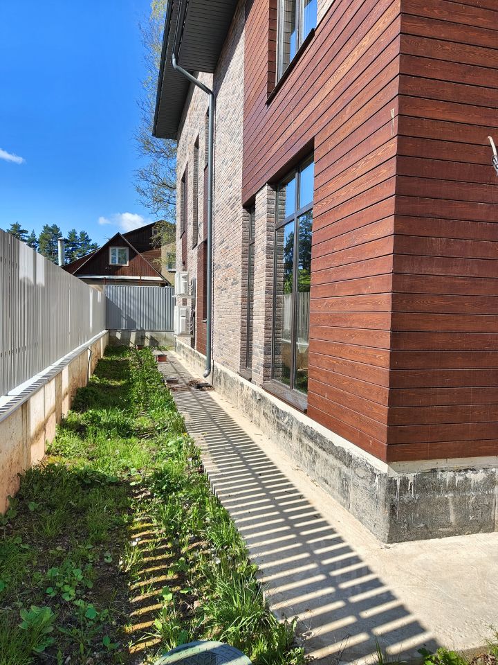 Основной дом и гостевой дом построены из газобетона 380 мм и 300 мм. Фундамент ленточный. По всему участке с проектирован и разведен дренаж. На всех этапах строительства производится технический надзор выполненных работ.