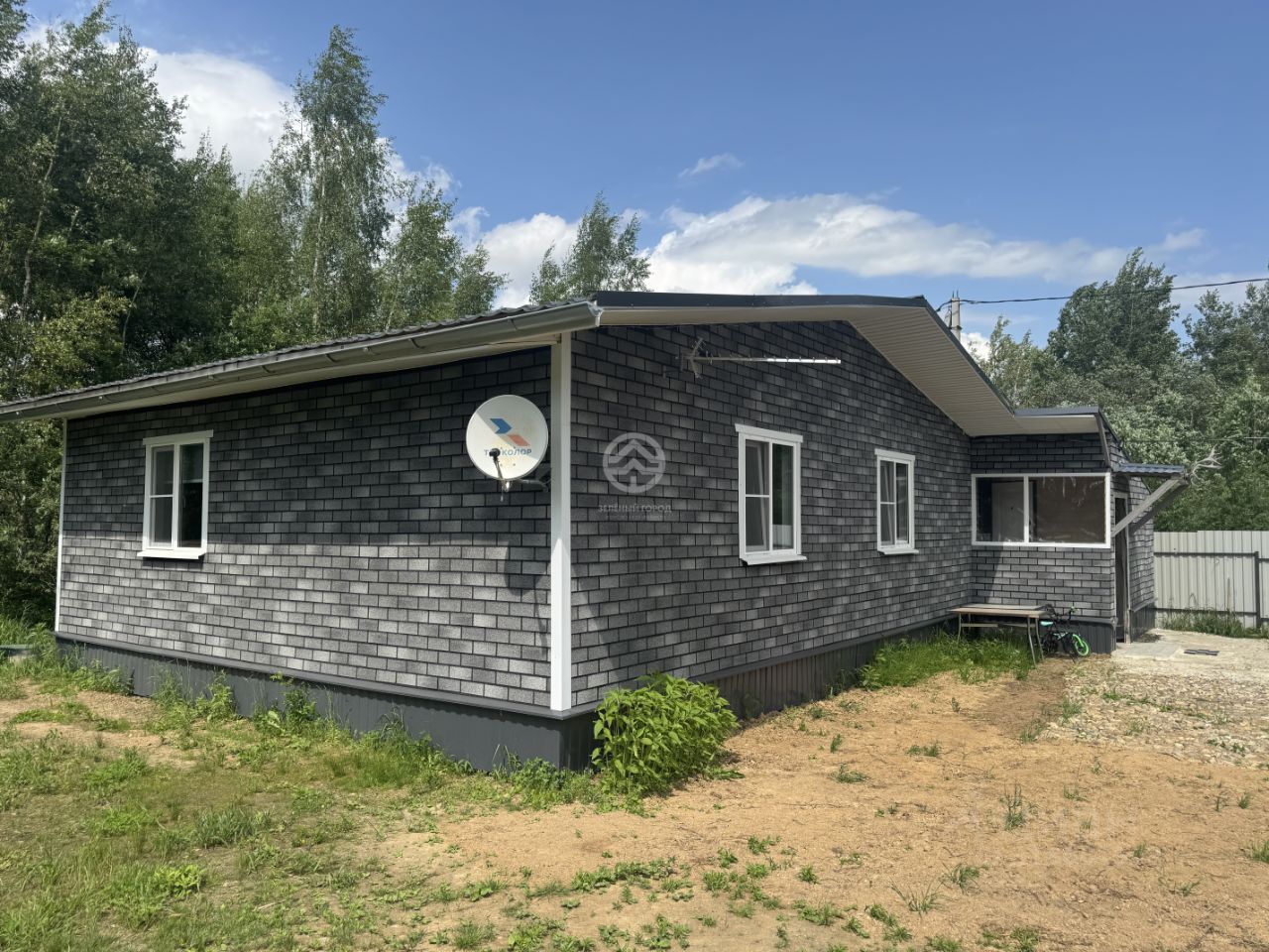 55222. Продаётся каркасный дом для круглогодичного проживания расположенный на земельном участке 8 соток по адресу: Московская обл., Клинский район, вблизи д. Гафидово. Дом 2024 года постройки, общей площадью 120 кв. м., на свайном фундаменте, облицован гибкой черепицей с рисунком под кирпич, кровля металочерепица, утеплен 150 мм. Участок огорожен комбинированным забором из профлиста и сетки-рабицы, ровный, освоен, ухоженный, установлены ворота и калитка. Коммуникации: электричество (15 кВт), бойлер на 80 литров, отопление электрически котел, водоснабжение из собственного колодца (8 колец) , септик (4 кольца). Планировка дома: кухня-гостиная, 2 комнаты, санузел, баня, мастерская. Полы в доме ламинат. Удобное месторасположение 80 км от МКАД, круглогодичный подъезд.