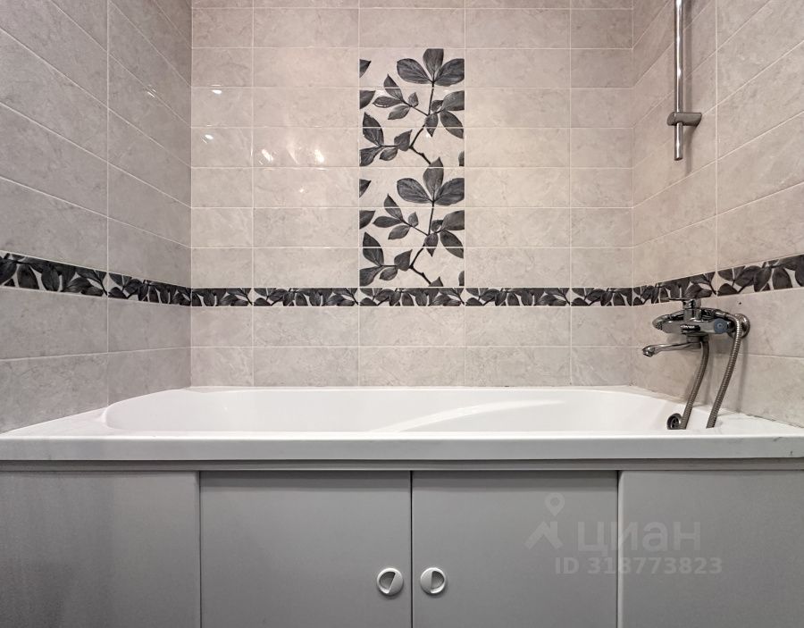 При входе, по правую руку, расположена большая гардеробная и просторный совмещенный санузел с полноценной ванной и стиральной машиной.