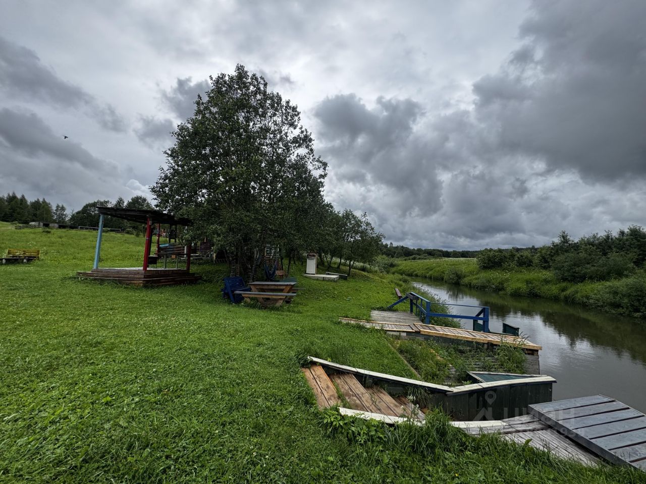 Коммуникации: Канализация - септик. Вода - центральный водопровод от артезианской скважины. Электричество - 15кВт, 3 фазы. Газ - сети газифицирования разведены по посёлку, подключение возможно с осени.