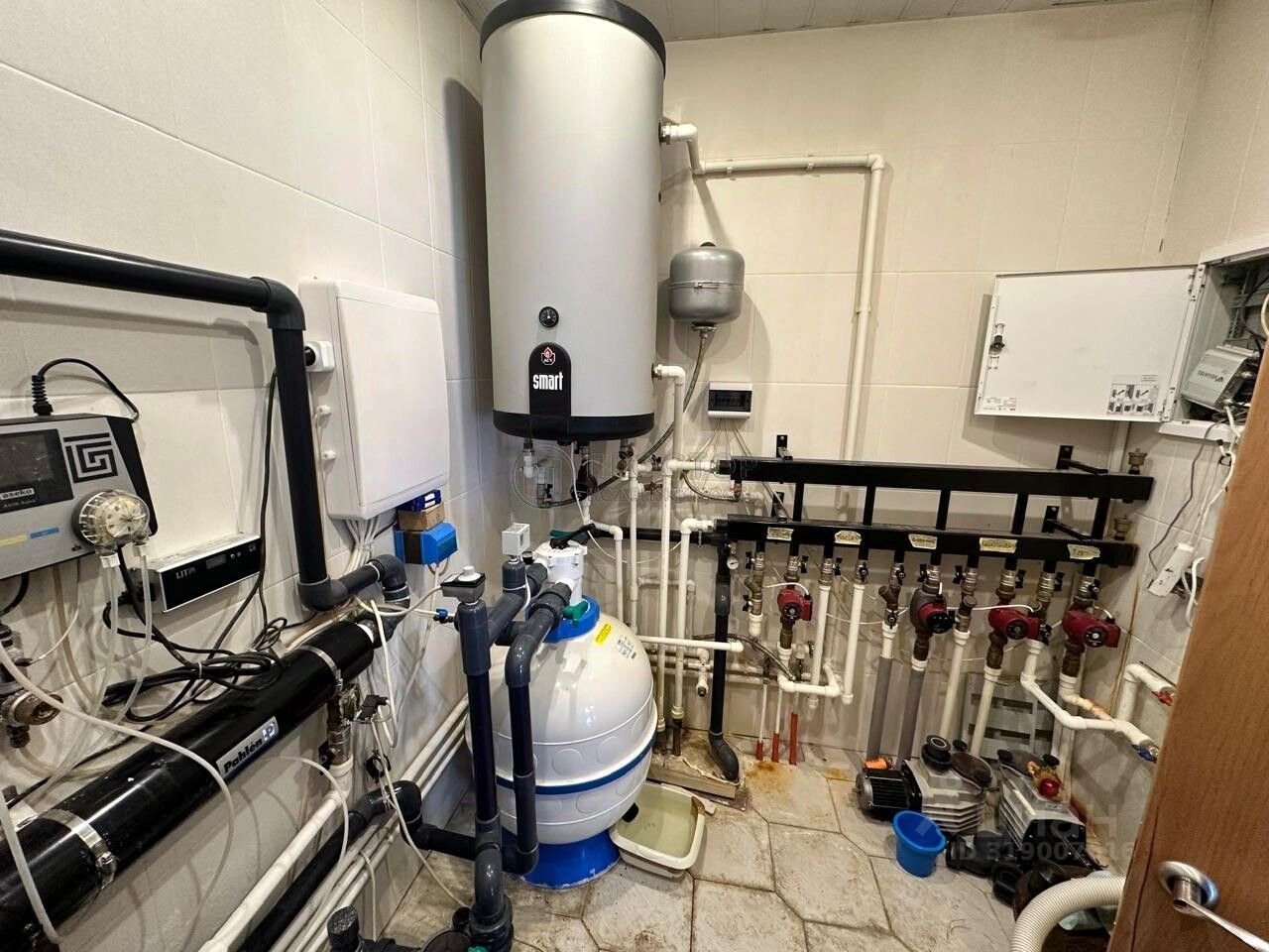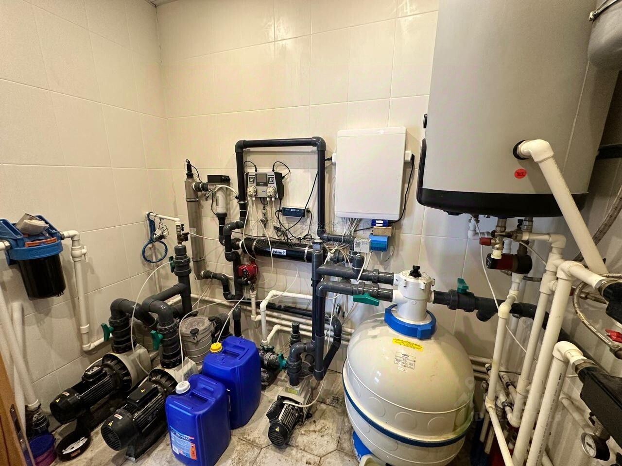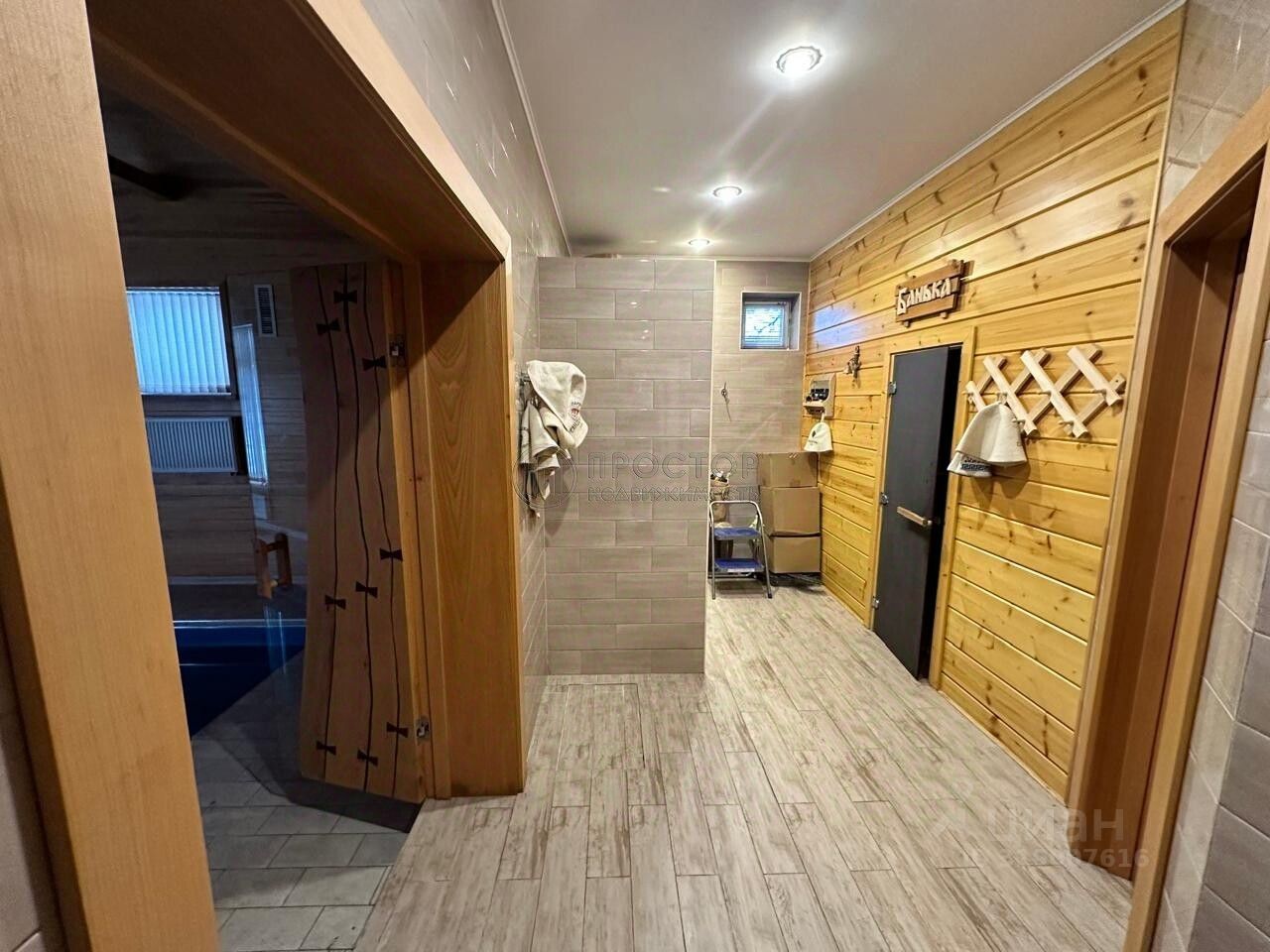 Банный комплекс: большая гостиная с кухонной зоной, 2 совмещенных сан узла, при выходе из парильной зоны размещены дополнительные 2 душевые кабины и бассейн. Своя котельная. На втором этаже расположена комната.