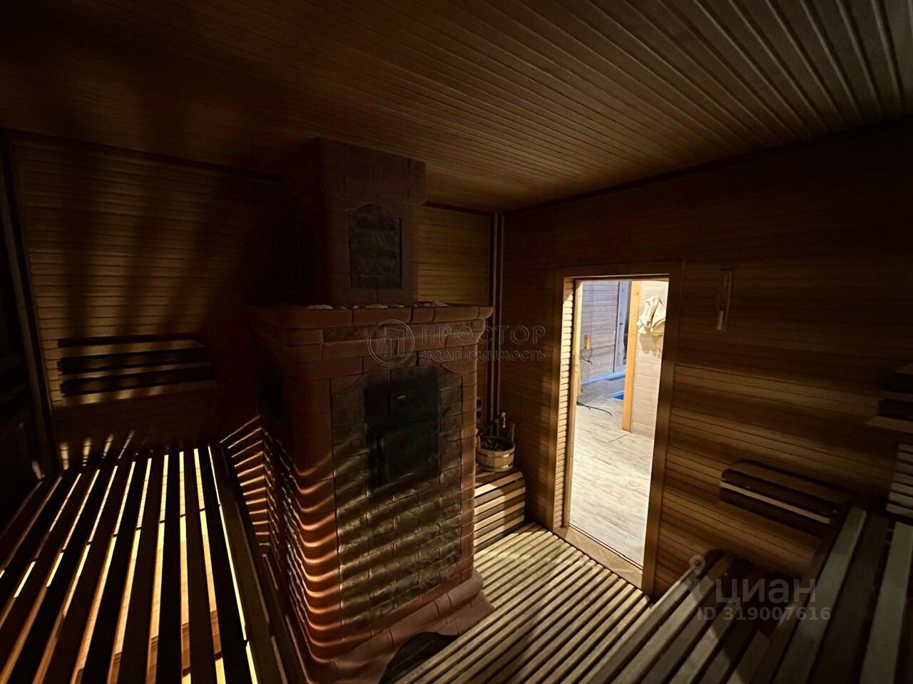 Банный комплекс: большая гостиная с кухонной зоной, 2 совмещенных сан узла, при выходе из парильной зоны размещены дополнительные 2 душевые кабины и бассейн. Своя котельная. На втором этаже расположена комната. Рядом с комплексом есть беседка открытого типа с мангалом.