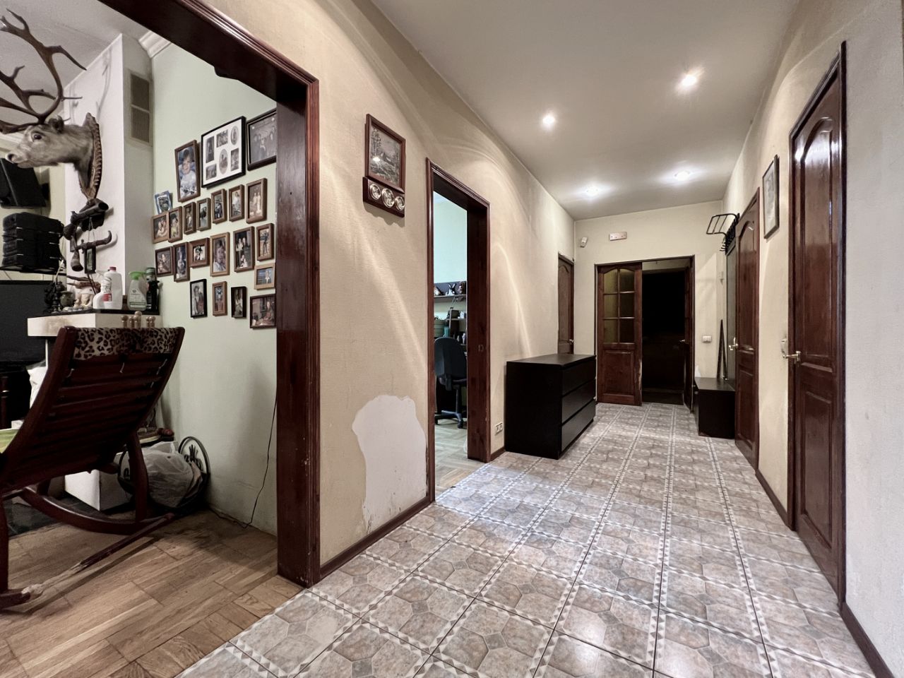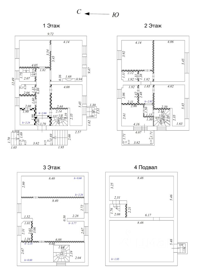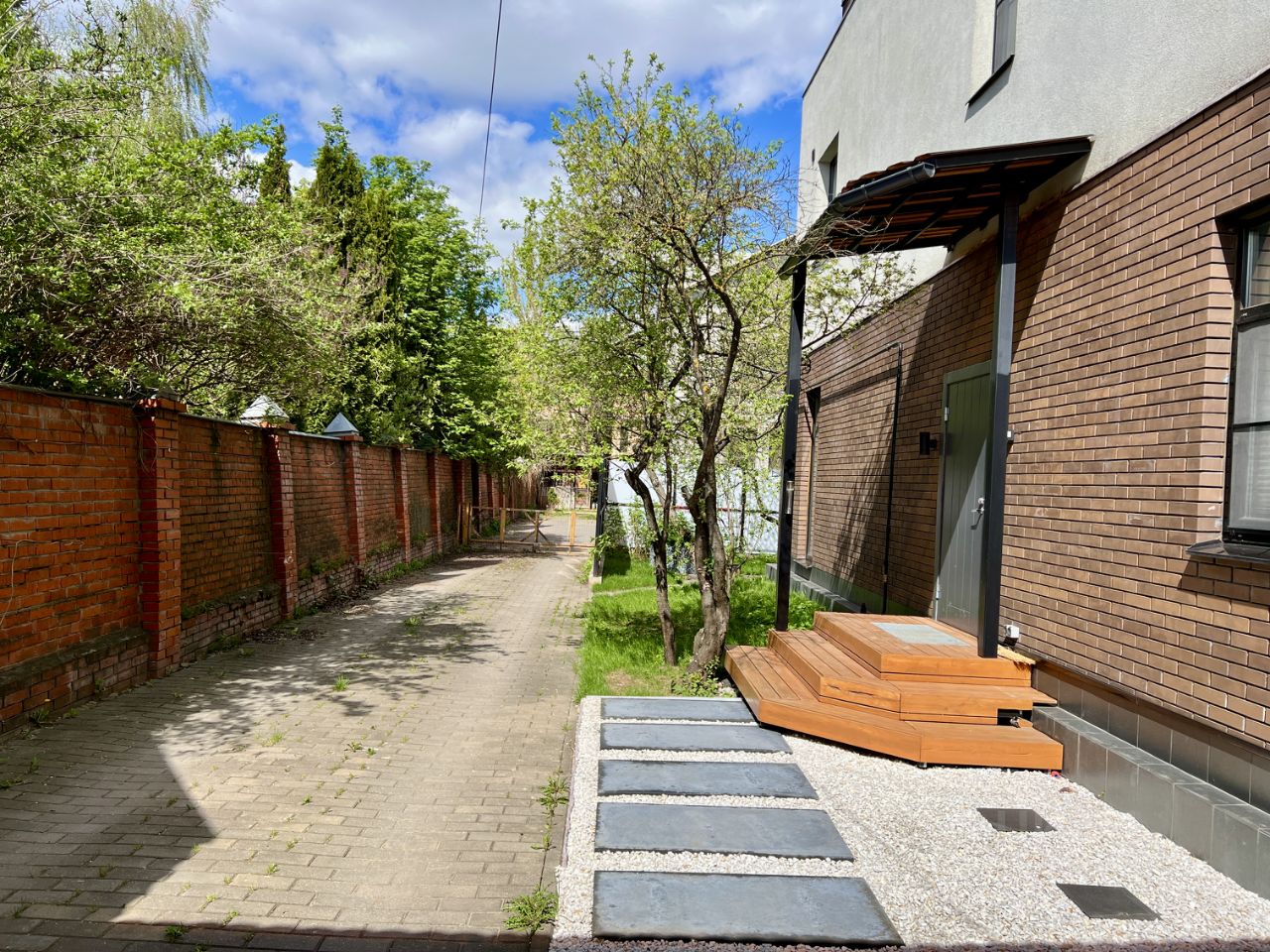 Дом трехэтажный, плюс полноценный подземный этаж. По ЕГРН четыре этажа. Год постройки 2004. Ленточный фундамент из бетонных блоков. Стены фасада из красного кирпича, работы по их утеплению и установке снегозадержателей на крыше произведены в 2021 году.