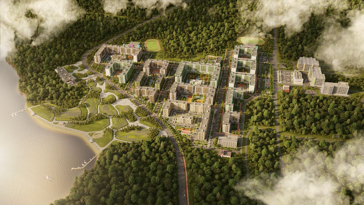 Жилой комплекс находится в экологически чистом и престижном районе, в непосредственной близости от соснового бора.