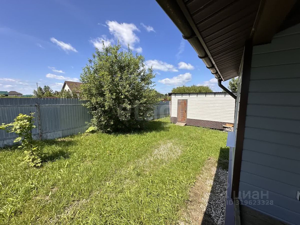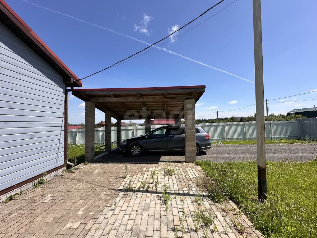 Участок прямоугольной формы (2540 м), сухой благодаря естественному уклону, огорожен профлистом. Благоустройство включает тротуарную плитку перед домом, газон, саженцы деревьев, сарай 36 м и капитальный навес для автомобиля (потенциально — гараж). Автоматические ворота упрощают въезд.