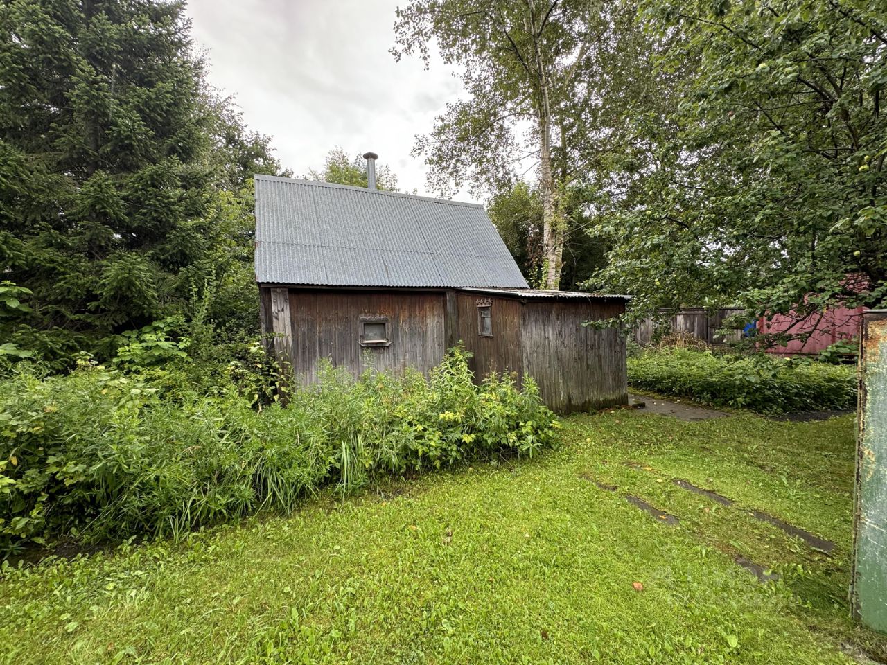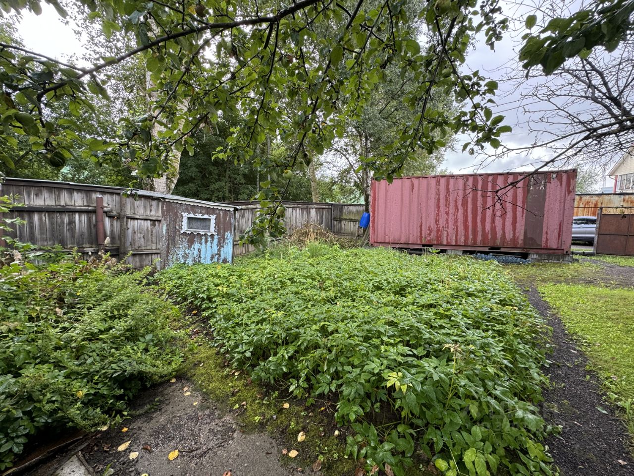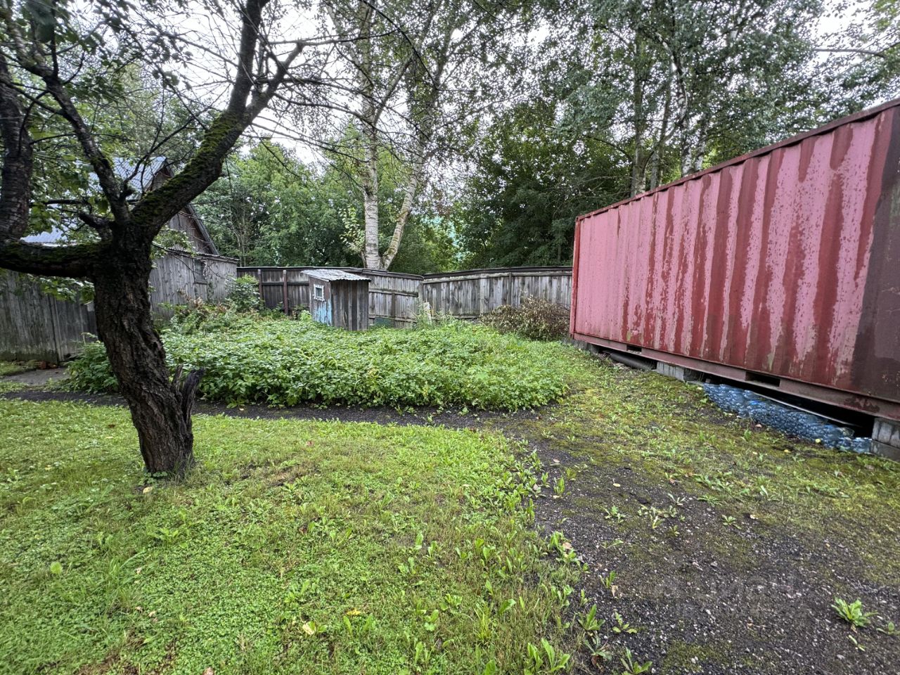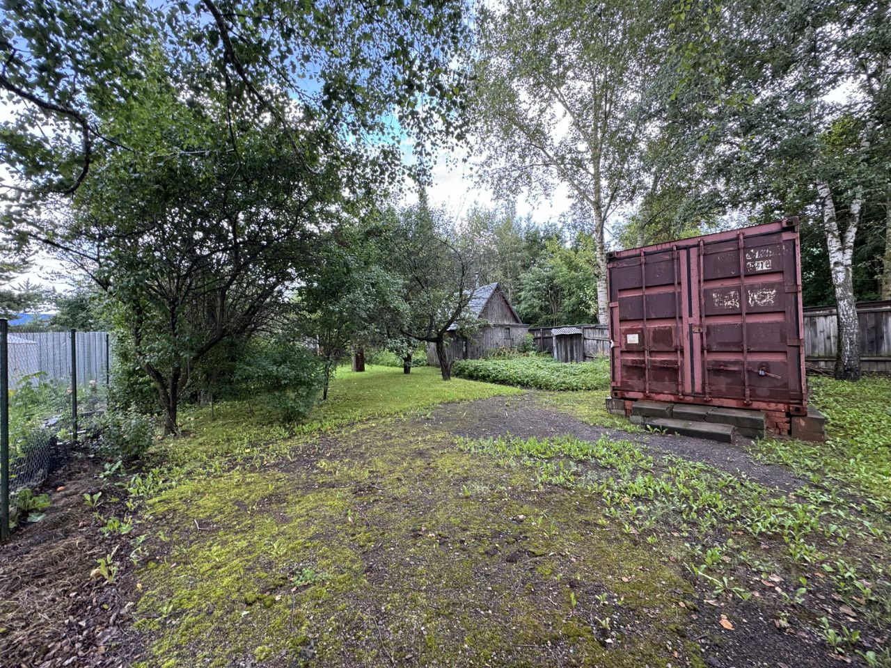 Участок: правильной формы, с декоративными и плодовыми деревьями, кустарниками, аккуратными дорожками и надежным забором. Здесь также имеется баня и контейнер для временного проживания, что делает этот дом идеальным для жизни круглый год.