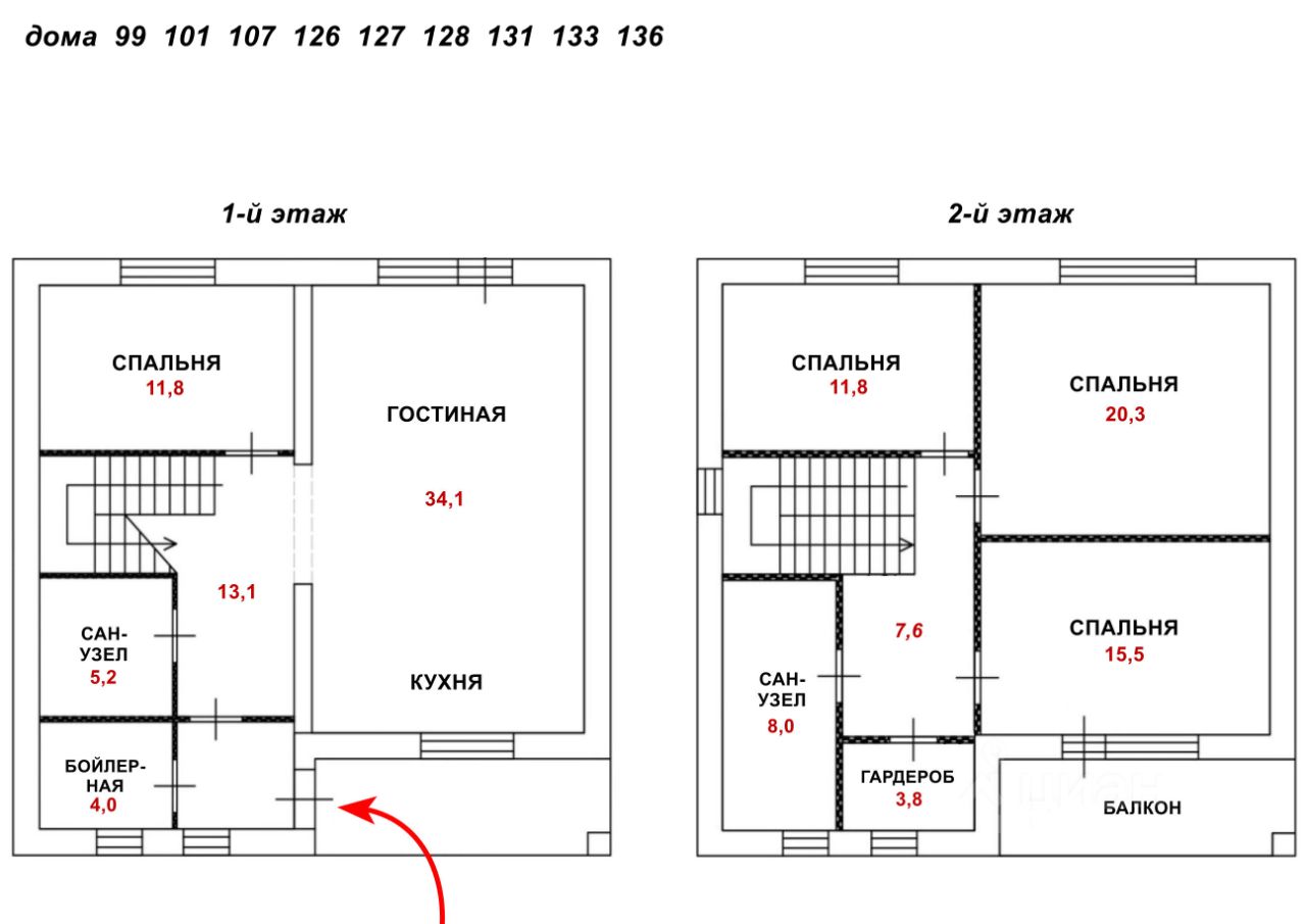 Окна в спальнях не направлены в окна соседних домов, санузлы не имеют общих стен с комнатами Планировка из техплана приложена. На первом этаже спальня, кухня-гостиная с выходом на участок (возможна пристройка террасы), санузел, бойлерная. На втором этаже три спальни, гардеробная, санузел, балкон.