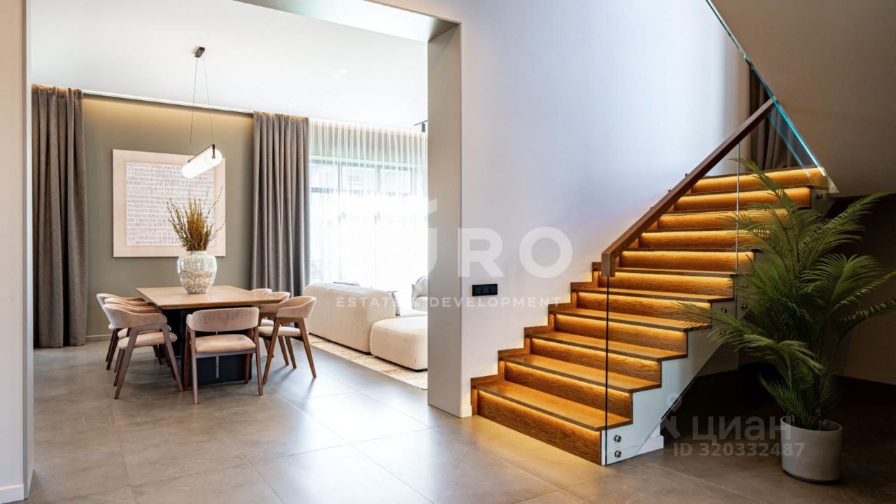 Загородный дом с 4-мя спальнями, общей площадью 320 м², представлен ''под ключ'' и расположен на видовом участке 8.5 соток.