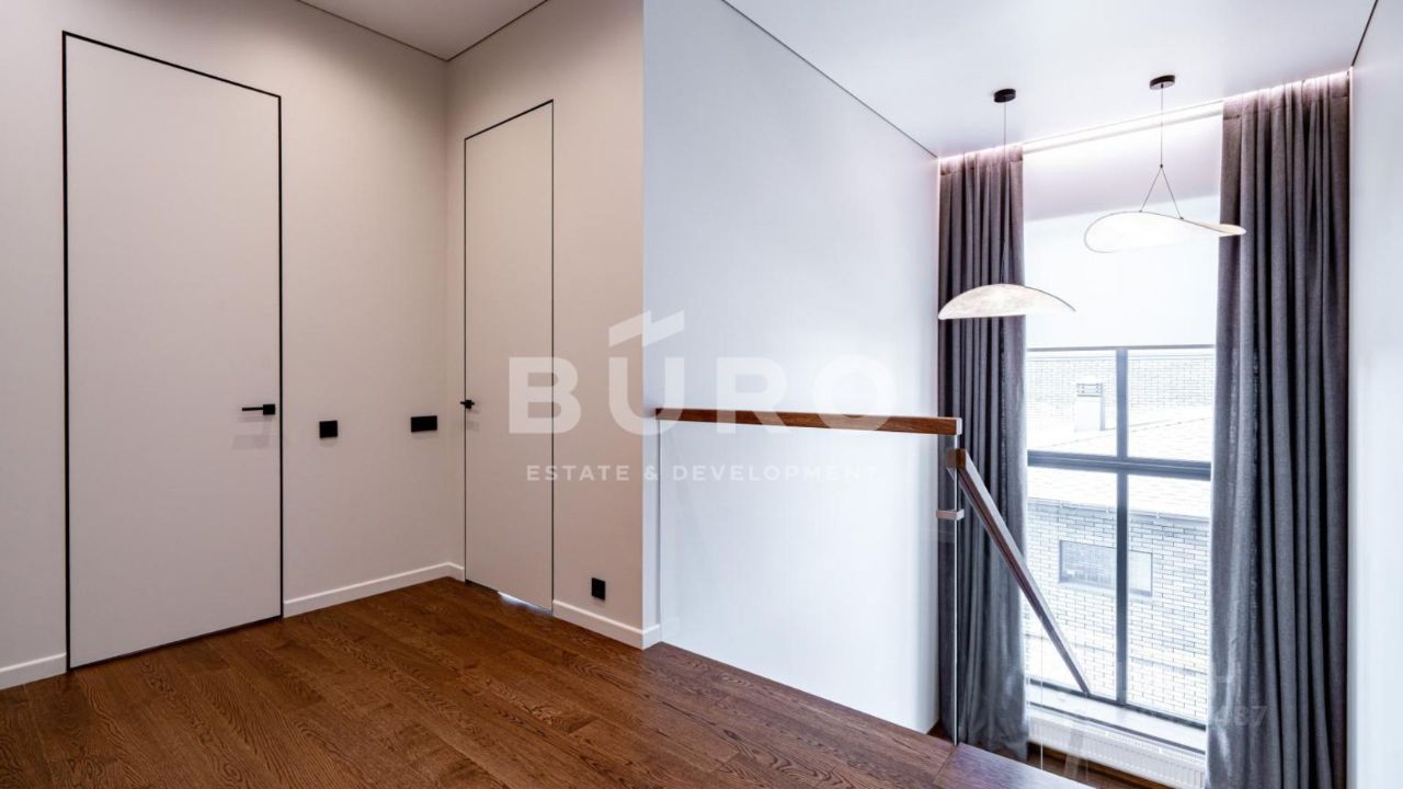 Второй этаж: мастер-спальня с санузлом и гардеробной, 2 детские спальни, отдельная гардеробная, санузел, балкон.