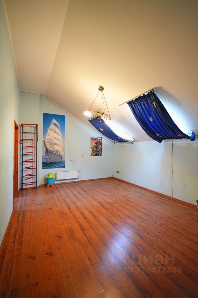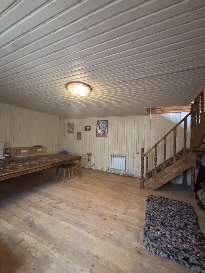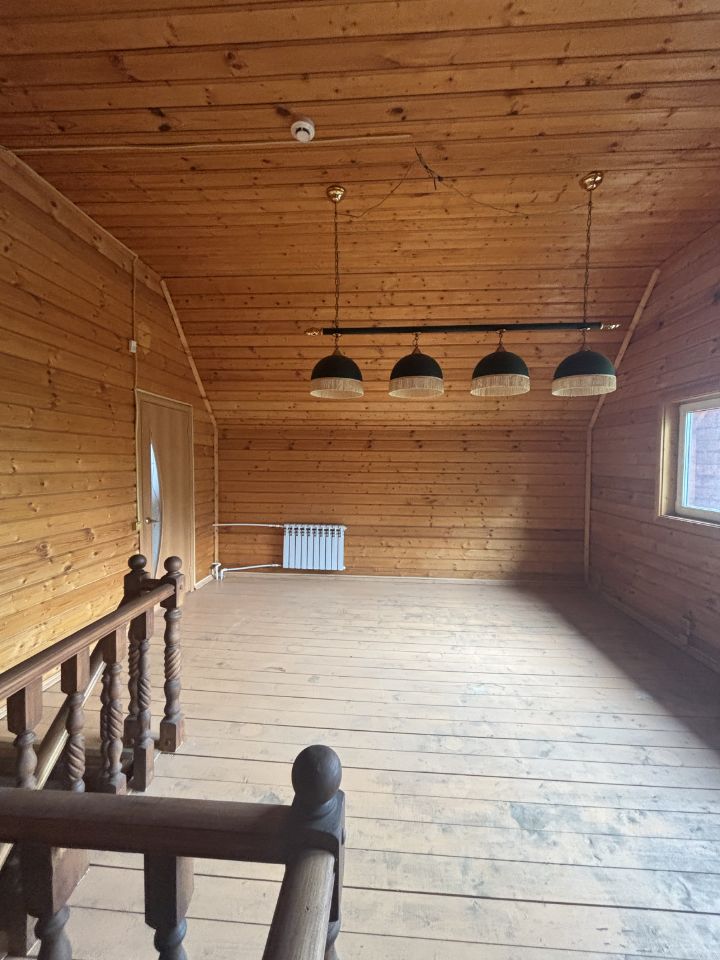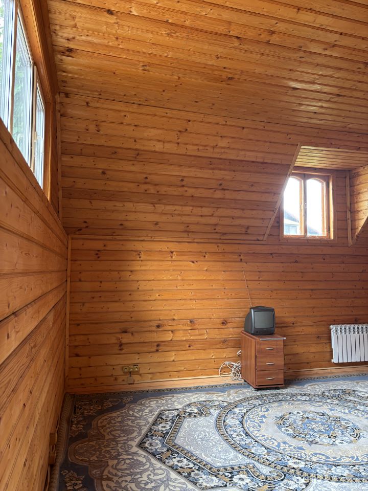 Дом-баня 120 кв.м., сруб из бревна: - на первом этаже сауна с дровяной печью и купелью, комната 30 кв.м., - на втором этаже комната 27 кв.м. с санузлом, большой холл (место для бильярдного стола и т.д.) с выходом на открытый балкон и видом на детскую площадку с домиком на ''курьих ножках'').