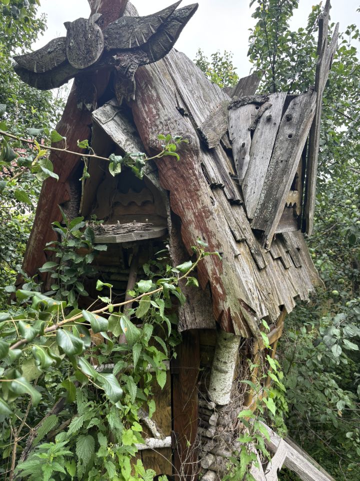 На живописном участке с яблоневым садом расположен основной дом, дом-баня, два гаража с вольером для собак, котельная-хозблок, детская площадка.