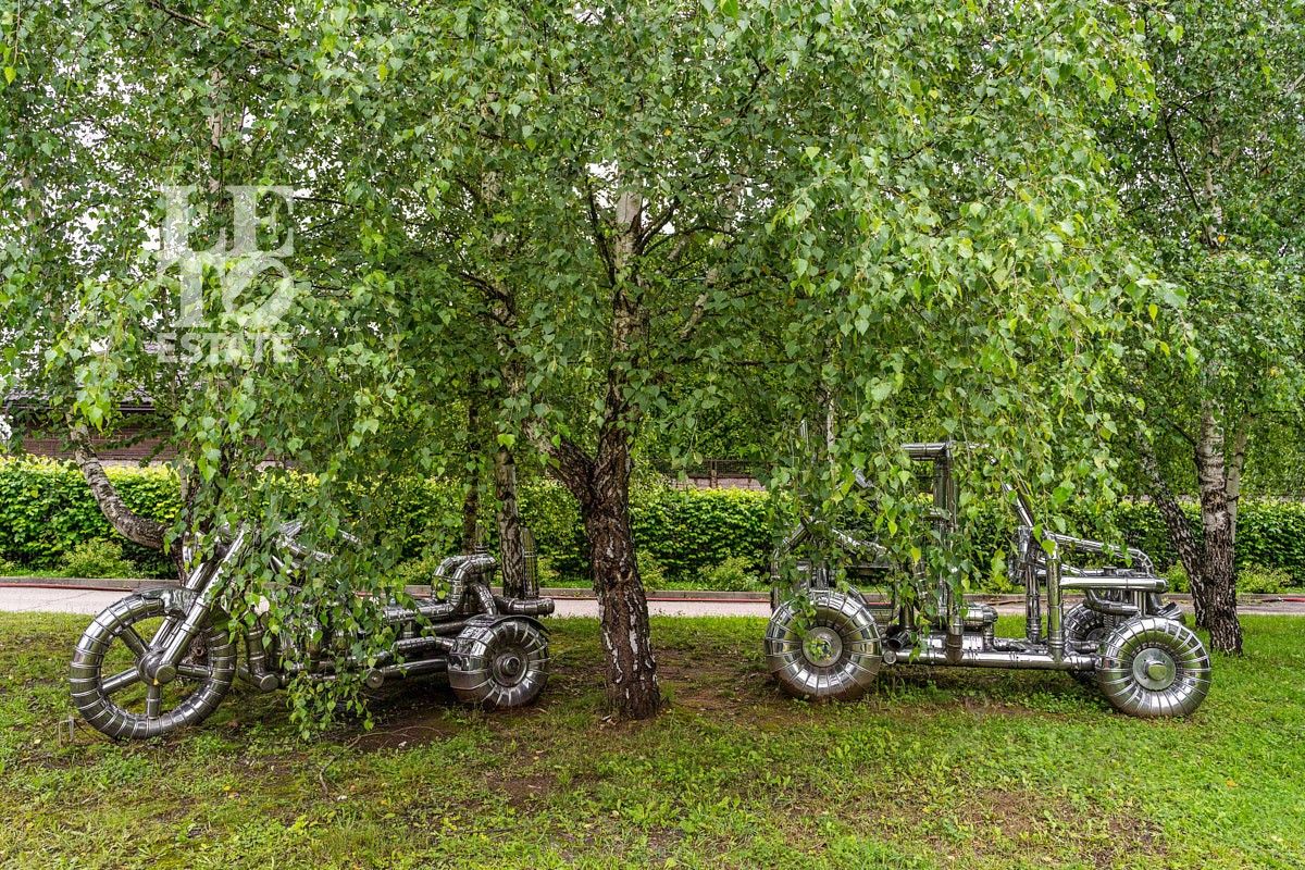Дом для помощников по хозяйству в два этажа, с отдельной кухней - столовой, двумя комнатами и санузлом. Гараж на две машины и отдельная котельная. Дом расположен на участке 27 соток правильной формы с уклоном.