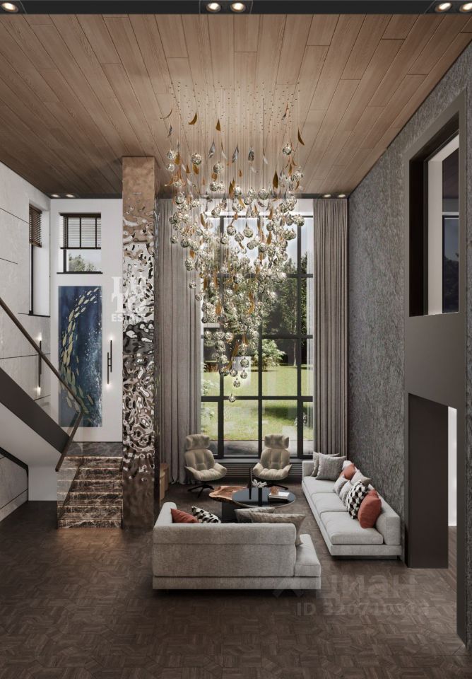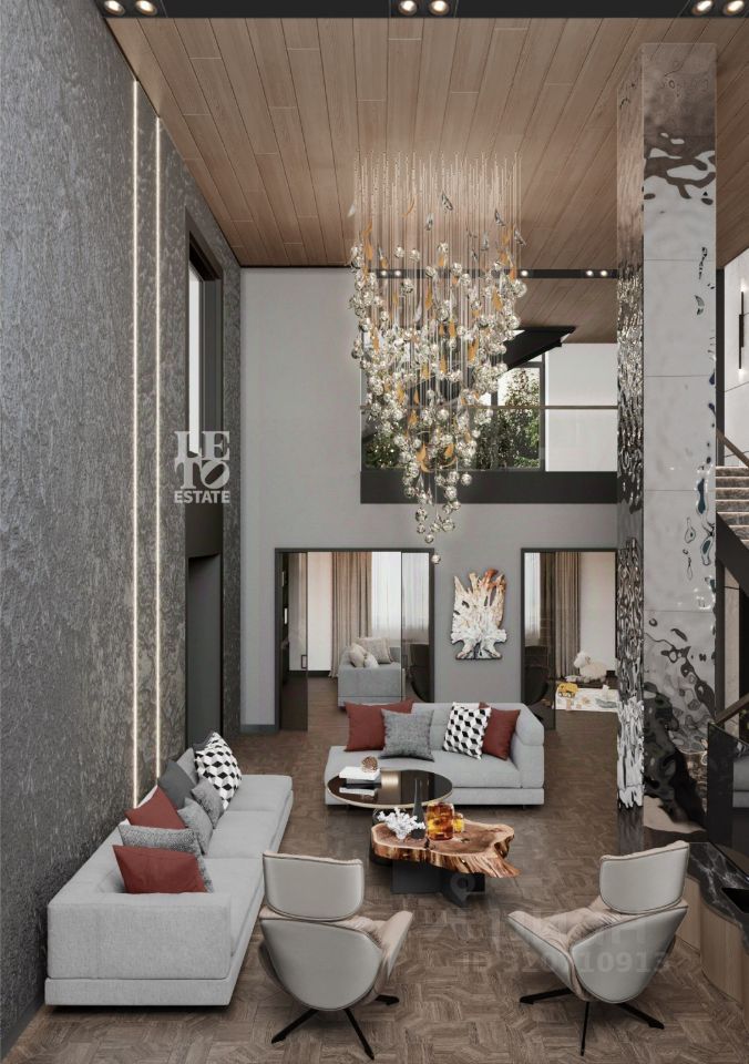 Дом построен по индивидуальному проекту, с использованием качественных и дорогостоящих материалов. Панорамные окна, высокие потолки, просторные комнаты с отдельными санузлами и гардеробами. По проекту дома запланирована библиотека, бильярдная комната и тренажерный зал с потрясающими видами на лес.