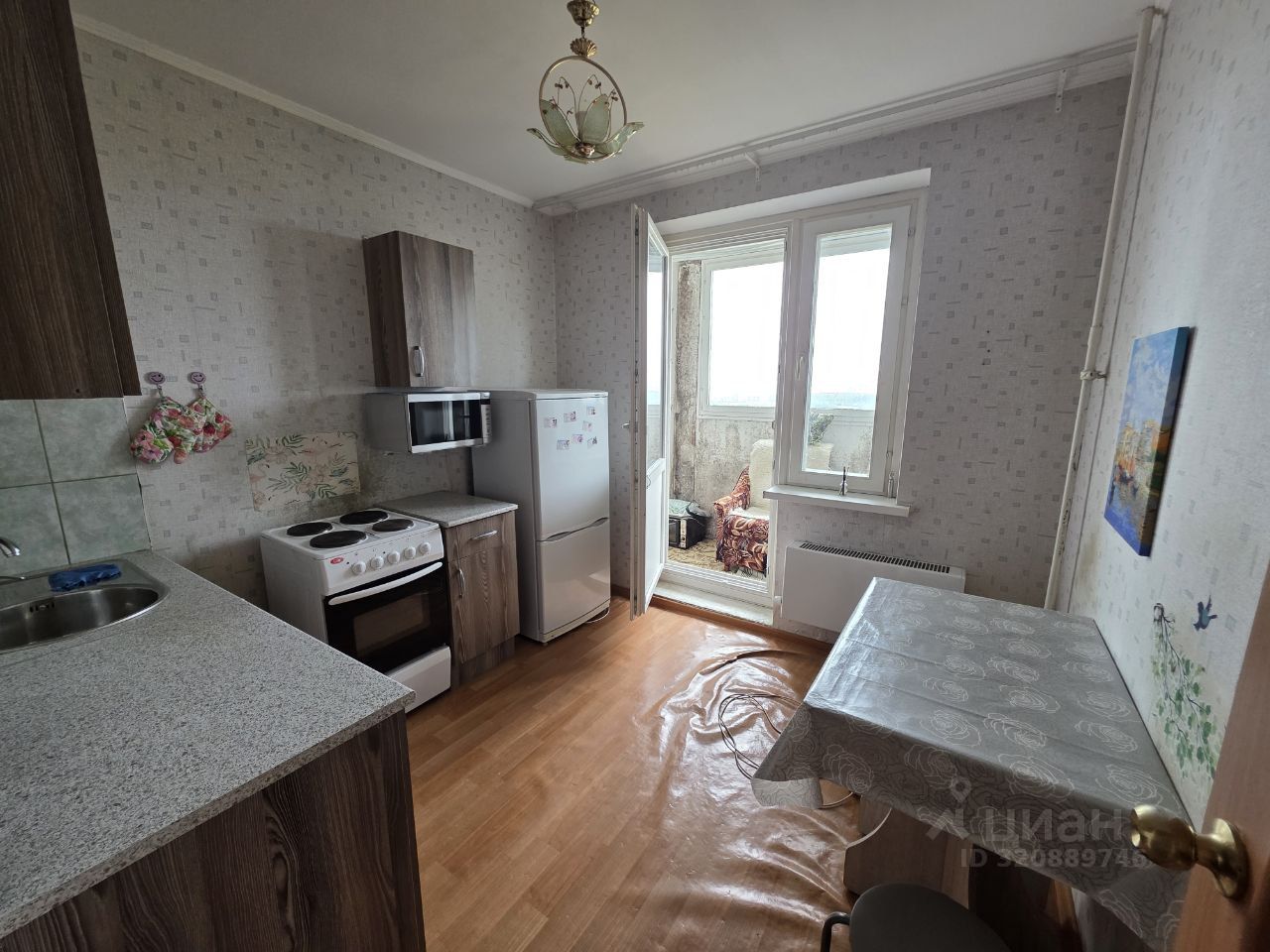 Кухня полностью подготовлена к хозяйственной деятельности, бытовая техника в наличии. Есть холодильник, микроволновая печь, стиральная машина. Есть мебель. Санузел совмещенный. Есть кладовая. Есть застекленная лоджия.