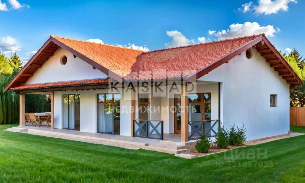 О коттедже: - Площадь: 170 м2 - Участок: 11,25 сот. - Этажей: 1 - Отделка: черновая - Планировка: кухня-столовая совмещенная с гостиной, 3 спальни, гардеробная, сауна и 2 санузла. - Коммуникации: канализация, водопровод, электричество, газ, оптоволокно (все заведено в дом)