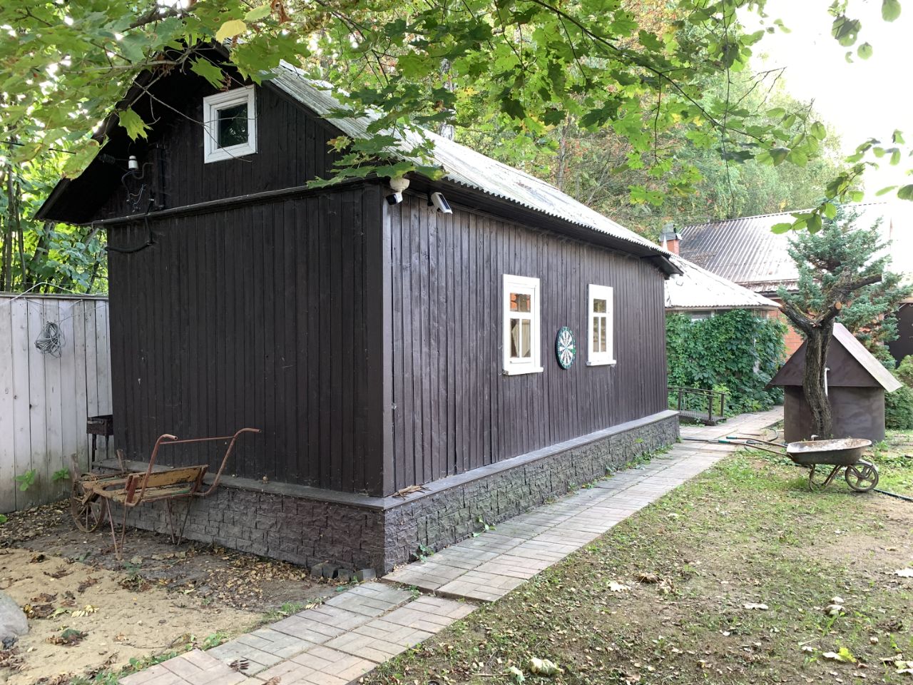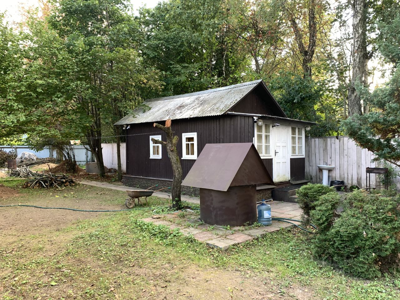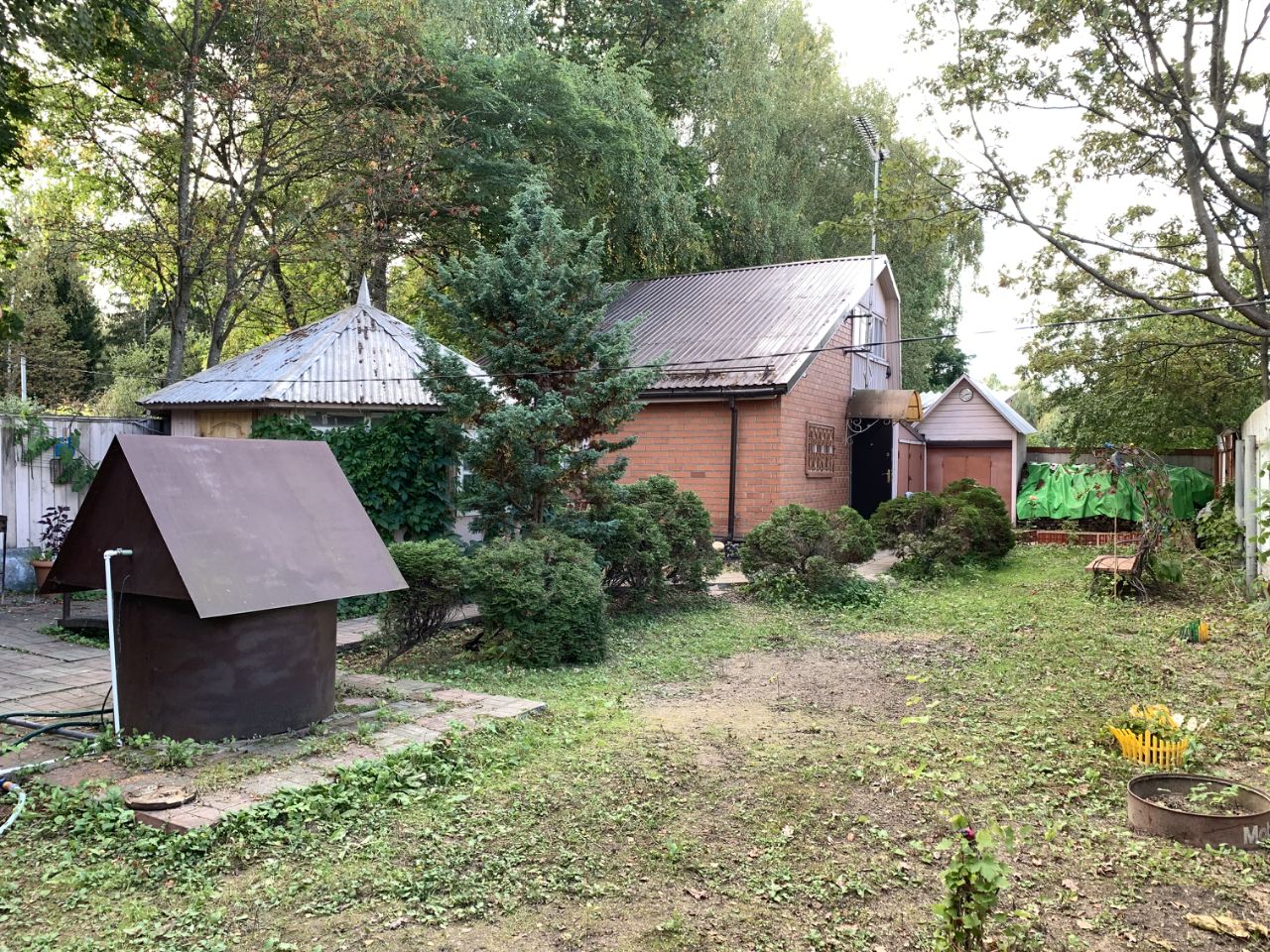 Уютный жилой дом в стародачном месте близко от Москвы. Дом утеплен, стоит электрический котел, зимой тепло. Участок обнесен забором, два въезда. Жилой поселок. На участке баня 19,7 кв. м., гараж 16,5 кв. м. и круглая беседка. Участок ухожен и окружен живописными вековыми деревьями. Земельный участок, категория земель: земли населенных пунктов, вид разрешенного использования: для индивидуальной жилой застройки, для индивидуального жилищного строительства, общая площадь 700 кв. м. В поселке несколько продуктовых магазинов. Электричество, колодец. Возможность подключить городские коммуникации (газ, вода). Администрация ведет работы по проведению центральной канализации. Асфальтированные дороги к дому.