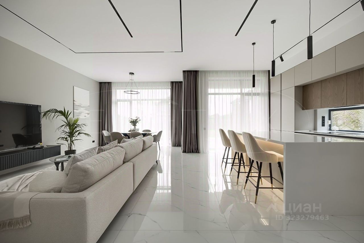 Внутренняя отделка выполнена из премиальных материалов, а интерьер дополнен стильной мебелью. В ванных комнатах установлена сантехника высокого класса. Панорамные окна, второй свет и высокие потолки 3.