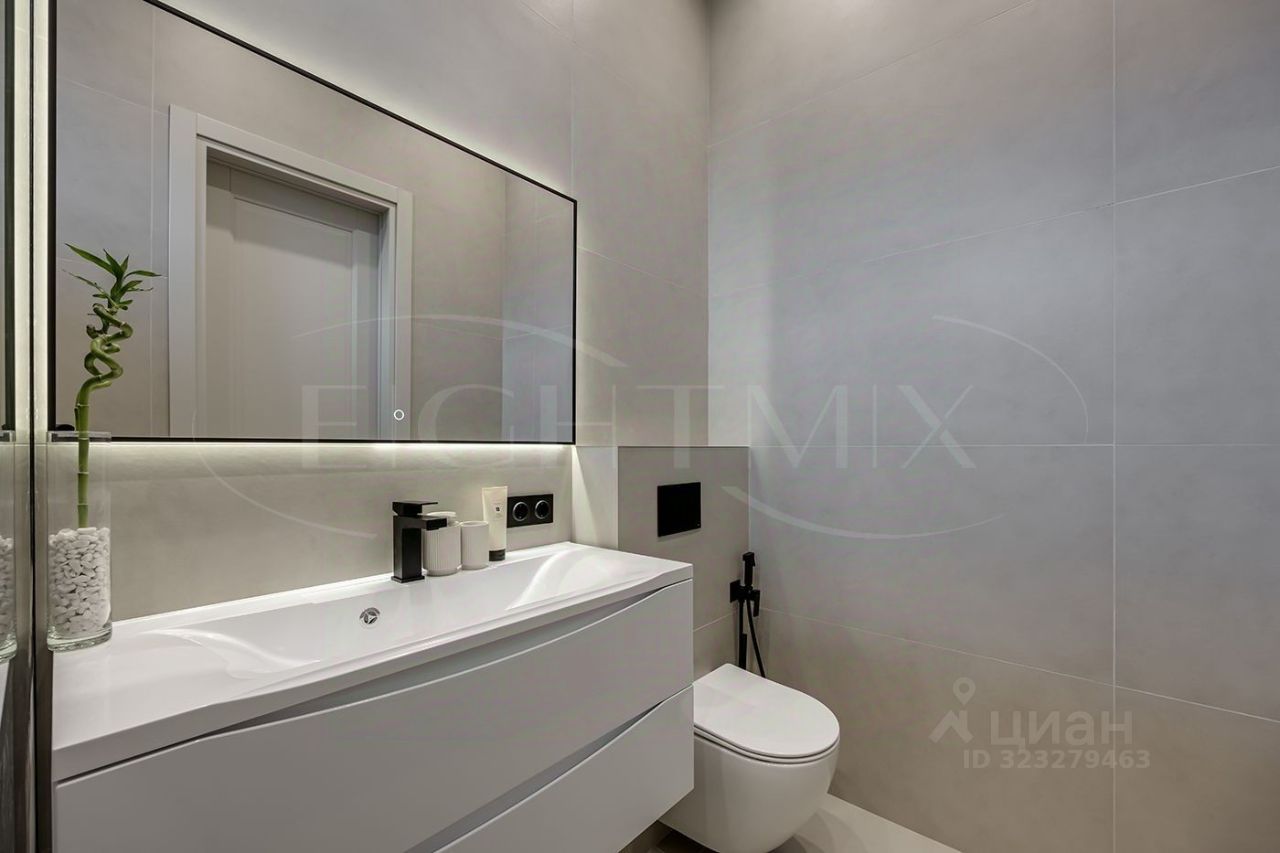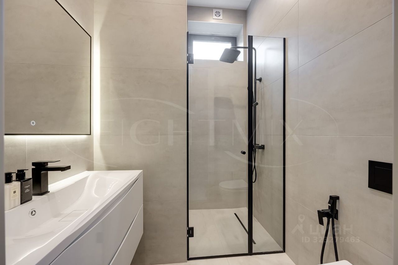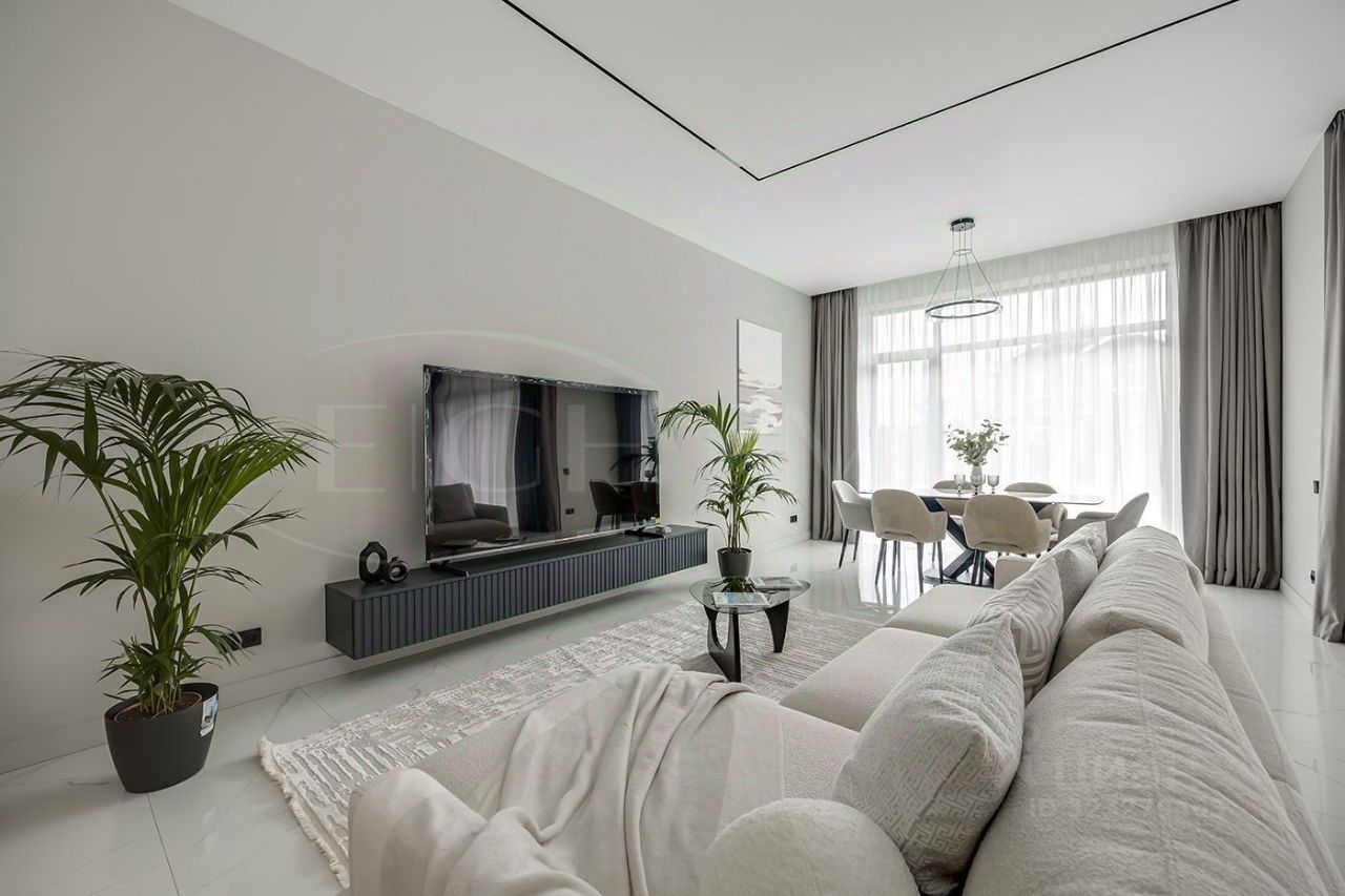 Внутренняя отделка выполнена из премиальных материалов, а интерьер дополнен стильной мебелью. В ванных комнатах установлена сантехника высокого класса. Панорамные окна, второй свет и высокие потолки 3.2 м