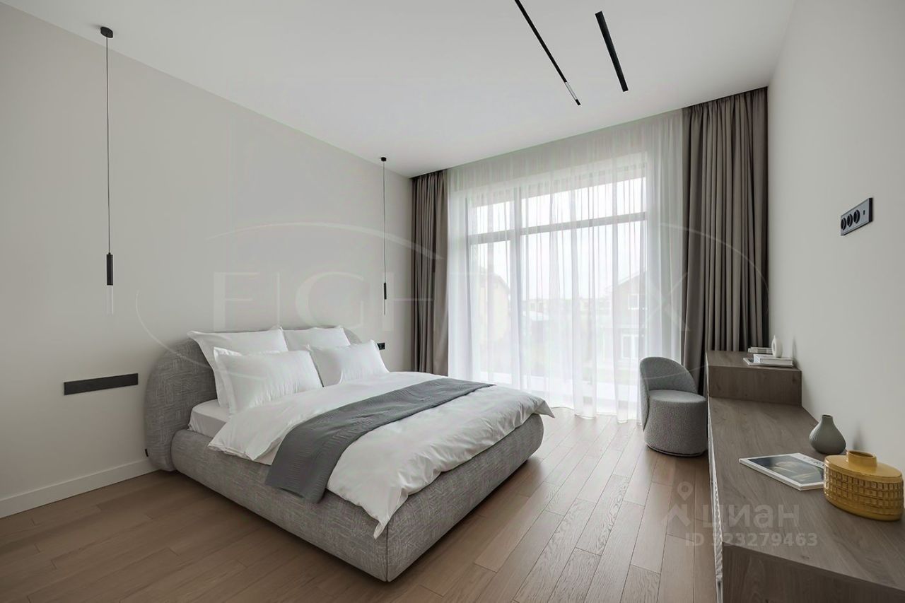 - 2 этаж: три спальни, каждая из которых оборудована собственной ванной комнатой и гардеробной.
