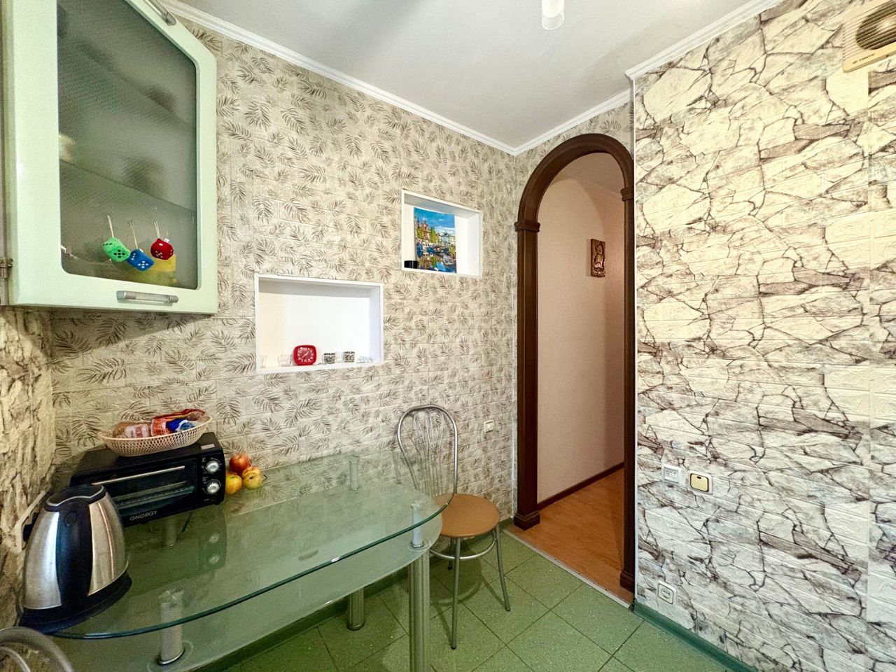 — Кухня 5,4 м2 со встроенным гарнитуром и техникой, установлен теплый пол.