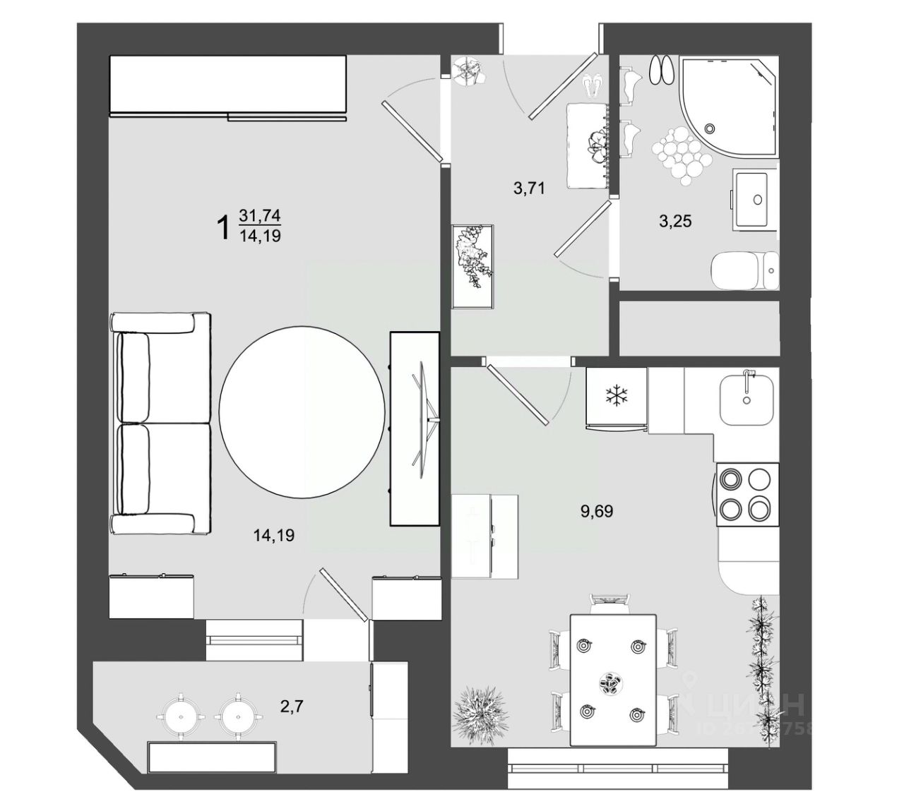 Общая площадь31,74 м2