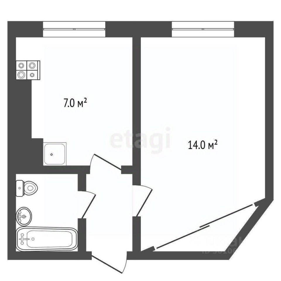 Квартира теплая и светлая, располагается на четвертом (мансардном) этаже четырехэтажного кирпичного дома. Комната 14 кв.м, кухня 7 кв.м., совмещенный санузел.