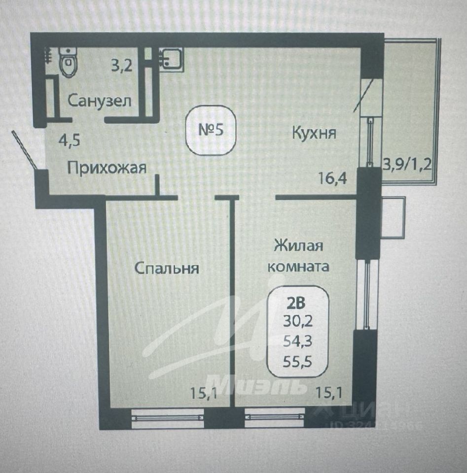 Общая площадь53,7 м2
