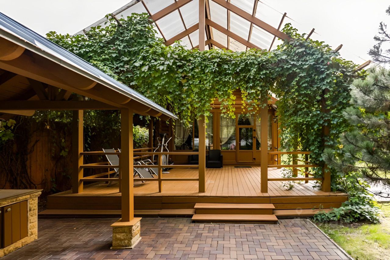 На просторном лесном участке расположены: Основной дом с бассейном 553кв.м. Баня 72 кв.м. с дубовой бочкой. Гараж 105 кв.м., с жилым блоком для персонала на втором этаже. Навес на 3 автомобиля. Обустроенная зона отдыха с барбекю.