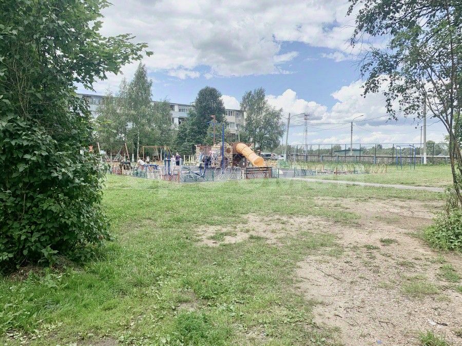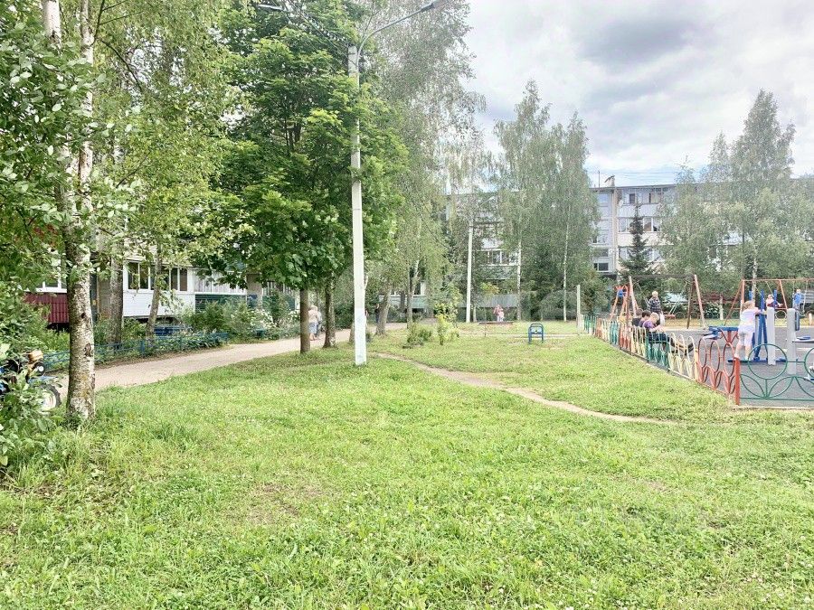 Во дворе новая детская площадка, зимой заливается каток.